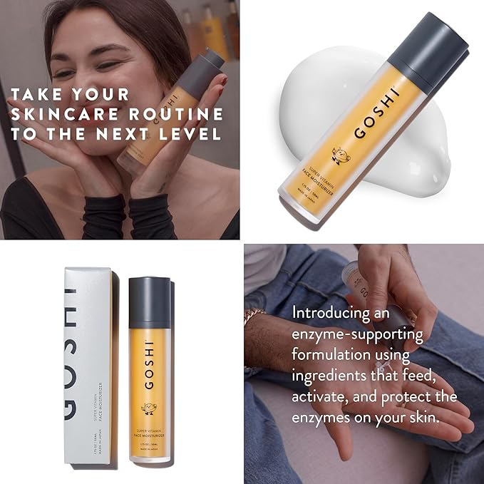 • For All Skin Types: Most face moisturizers disrupt the skin’s natural biology. They strip the skin barrier, throw off its pH balance, and overload it with actives that often come with a cost. The GOSHI Super Vitamin Face Moisturizer supports naturally occurring enzymes that regulate hydration, cell repair, and barrier function for all skin types.