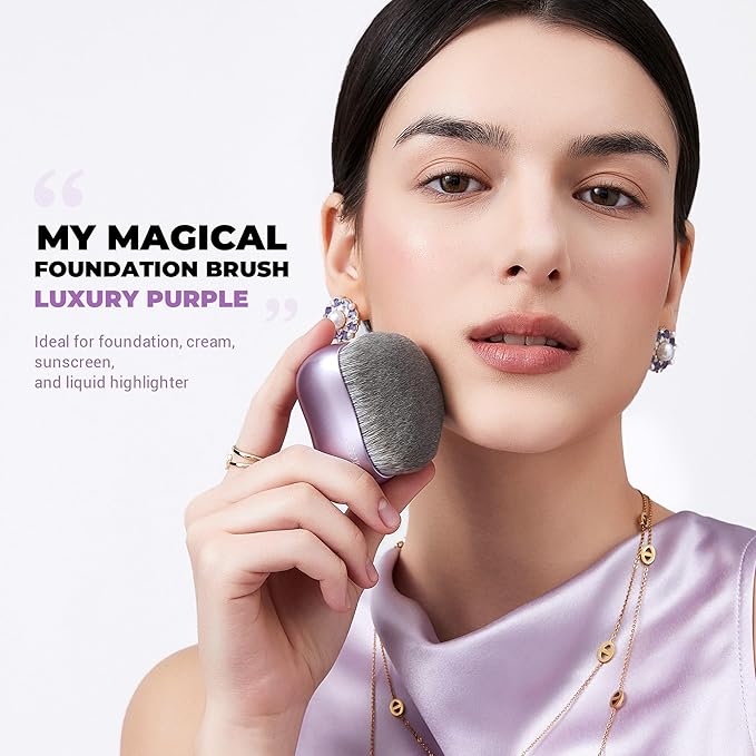 • My Magical Foundation Brush: Multi-tasker Face Brush-Luxury Purple, your all-in-one solution for flawless face makeup. This dense foundation brush is ideal for applying foundation, cream blush, liquid makeup, sunscreen, and highlighter with ease. Designed with soft yet firm bristles, it delivers seamless blending and smooth coverage, making it a must-have in your collection of makeup brushes & tools.