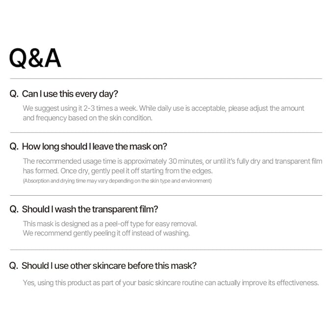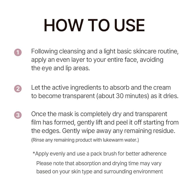 • Tight-Fitting Peel-Off Wrapping Mask : Designed to fit closely to the contours of your face, helping to create a smooth and radiant finish. Easily peels off after use, leaving skin feeling refreshed.