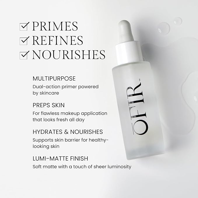 • Dual Action Formula: OFIR hydrating serum acts as both a primer and skincare, prepping skin with a smooth grip while providing deep moisture that helps your makeup stay fresh longer with a clear finish.
