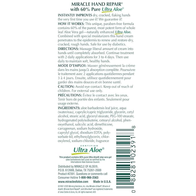 Miracle Hand Repair Cream (8 oz & 1 oz) Healing Aloe Vera Lotion for Dry, Cracked Hands with 60% Ultra Aloe Gel - Moisturizes, Softens, and Repairs - Non-Greasy, Lightly Scented