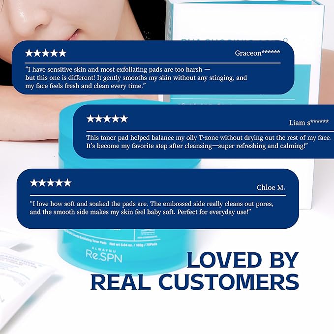 Re.SPN PHA Succinic Acid Calming Toner Pads – Daily Exfoliating, Hydrating and Soothing with CICA, Caffeine, Non-comedogenic, Vegan, Glass Skin, K-Beauty (35 Count)