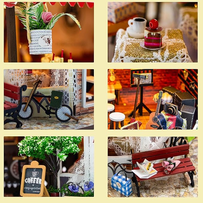 • 【Mini House Building Kit for Adults Teens】- This is a DIY doll house kit waiting for your creative assemble. 3D wooden puzzle miniature house kit includes a variety of detailed components such as furniture, guitar and flowers, retro bike, etc. The DIY miniature kit suitable for the people ages 15 and up. You can follow colorful English instructions step-by-step to build this book nook kit.