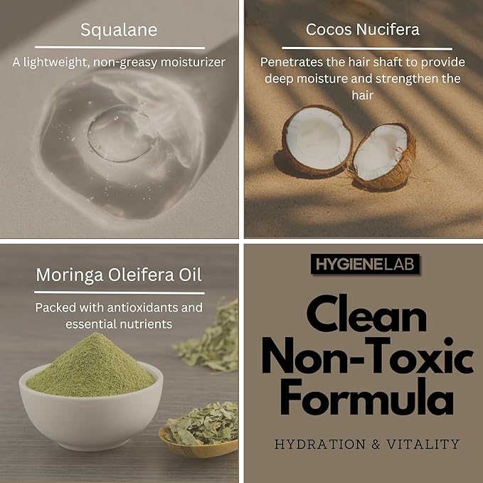 • SHAMPOO: Plant-derived cleansers remove impurities without stripping natural moisture. Panthenol and essential oils (Lavender, Patchouli) nourish and revitalize.