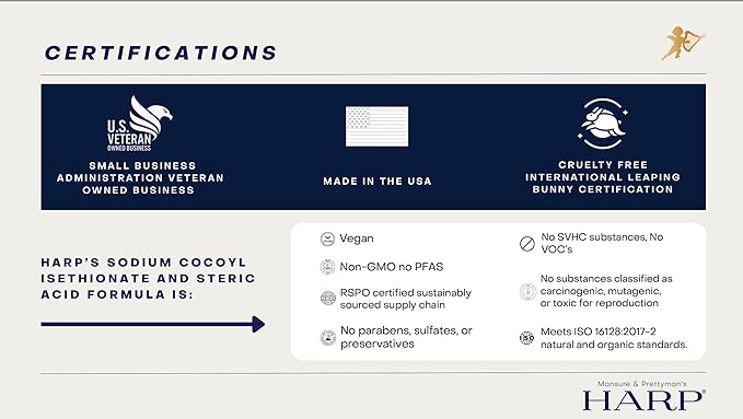 HARP pH balanced Exfoliating body wash bar. 100% Syndet, soap-free. pH 5.0-6.0. Shea-butter moisturizing. Bamboo powder exfoliant-the perfect consistency. FRAGRANCE/fragrance masking agent FREE.