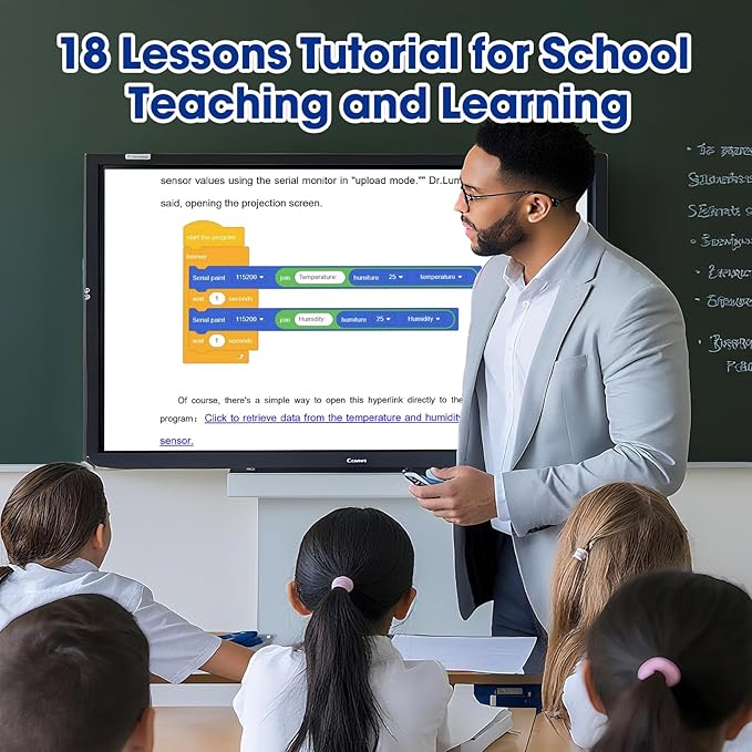 • ENTRY-LEVEL CODING KIT FOR BEGINNERS - Detailed online tutorial includes guidance, two different sample code - Scratch and Arduino, and 18 class of project-based learning. Designed for learning electronics and programming in a simple and fun way. The kit contains 12 projects to learn about the basics of different modules like buttons, LEDs, sensors, etc., and understand the application of IoT and sensing technology in home, cultivate technological innovation and problem-solving abilities.