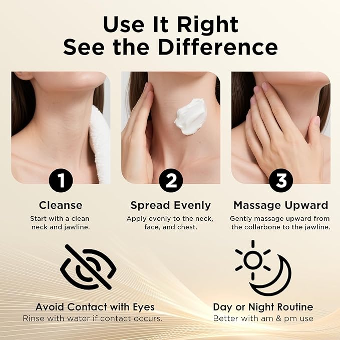 • EXPERTLY FORMULATED FOR MAXIMUM EFFECTIVENESS: Developed with precision, our lightweight, luxurious neck cream—engineered for targeted neck tightening and lifting—is expertly balanced to tighten, firm, and improve the elasticity of the delicate neck and décolleté area (outperforming generic skin tightening cream for body in this specific zone). With continuous use, it provides day-long hydration, leaving the skin visibly lifted, smooth, and nourished—rivaling the results of premium firming neck cream and neck creams for tightening and firming.