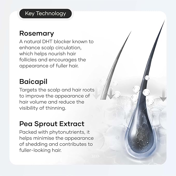 • Powered by Rosemary: Enriched with Rosemary Extract, a natural DHT blocker that boosts scalp circulation, strengthens follicles, and supports visible hair regrowth.