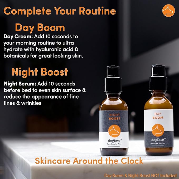 • NIGHT BOOST Dogface Night Boost Serum is a men’s night face cream any guy can wear at night whether your skin is oily or dry. Our science-based retinol formulation works while you sleep. Wake up with great looking skin.