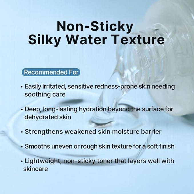 • Lightweight, pH 5.5 Level Formula : Balanced at skin’s natural pH 5.5 level for optimal comfort, this fast-absorbing watery toner hydrates sensitive skin without leaving any sticky residue.