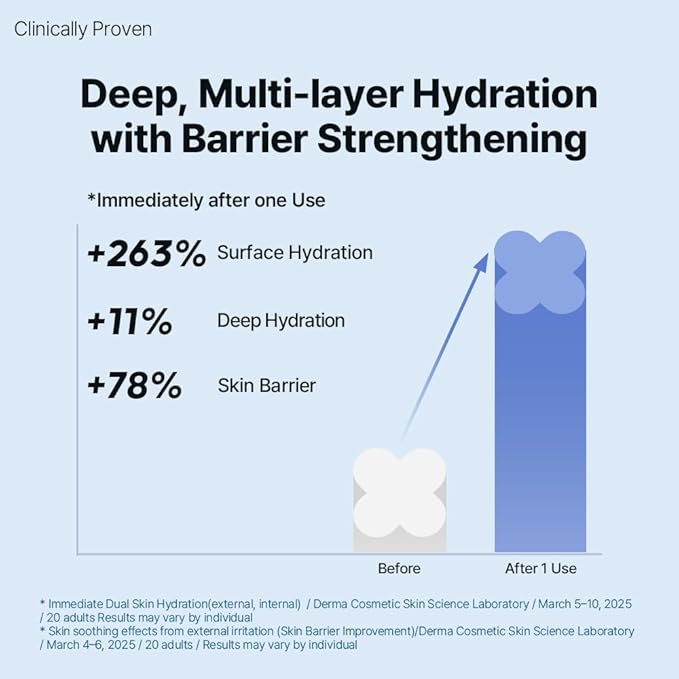 • Multi-layer Deep Hydration with 10 Hyaluronic Acid : 10 types of hyaluronic acid (From high to ultra-low molecular weight 300Da) delivers deep hydrating & moisturizing every skin layer for plump, dewy skin.