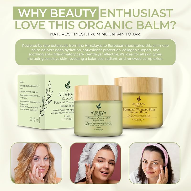 Botanical woman’s skin repair balm – Anti-Aging Moisturizer for Face, Body, Neck & DΓ©colletΓ© – Soothes Redness, Dryness, Itchy Skin – Calendula, Chamomile, Ginseng – 2oz Unscented