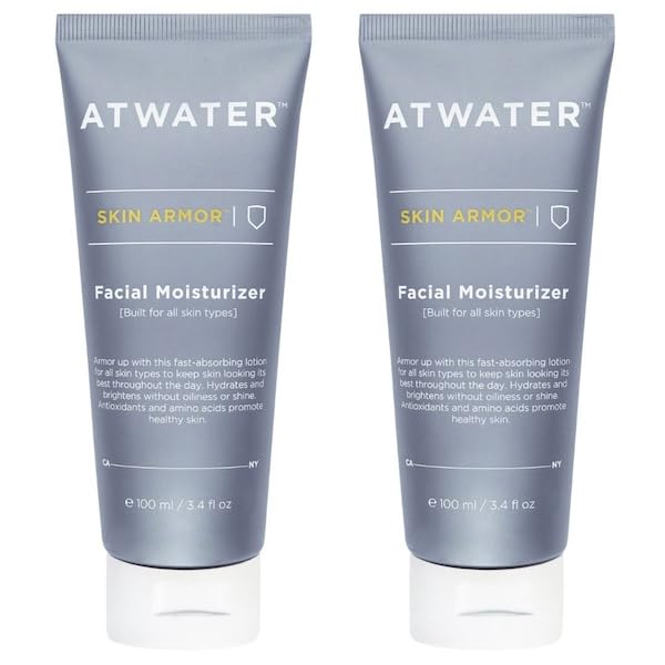 ATWATER Skin Armor Men's Face Moisturizer, Hydrating Anti-Aging Formula with Niacinamide and Licorice Root for All Skin Types - 3.4 oz (2-Pack)