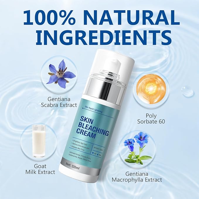 Skin Bleaching Cream-for Intimate Areas & Body, Skin Care Lightening Cream-for Private Parts, Underarms, Knees, Elbows, Inner Thighs, Bikini Areas, Dark Spot Remover for Face(4.0 Fl Oz)
