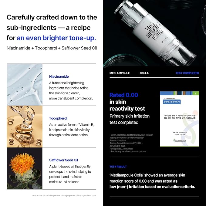 • Special Ingredients : Hydrolyzed Collagen, Niacinamide, Vitamin C, Vitamin E, Safflower Seed Oil