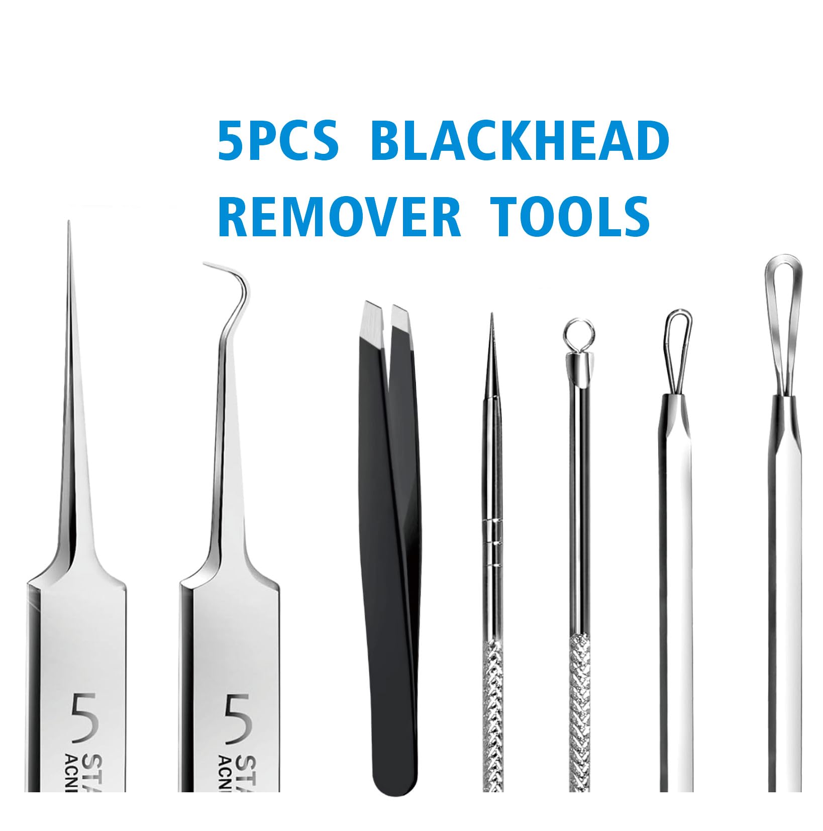 Blackhead Remover Pimple Popper Tool Kit - (5 Piece Kit) - Professional Stainless Pimples Comedone Extractor Removal Tool