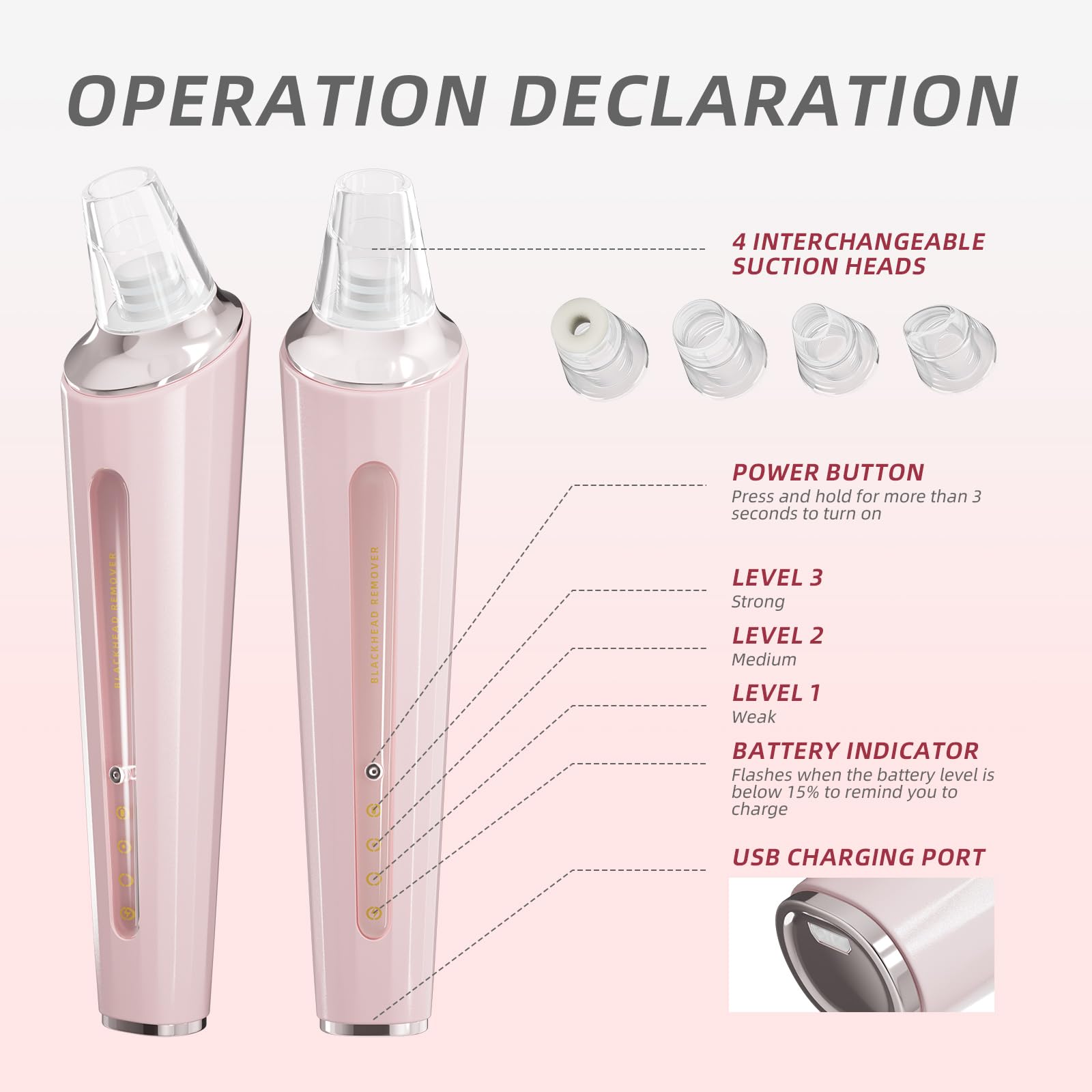 【3 Suction Levels and 4 Suction Probes】Three different powerful suction levels are campatible with all skin types, including oily, dry, sensitive, and combination skin, achieve genuine deep cleaning. Level-1 is suitable for sensitive and dry skin, Level-2 for normal & neutral skin, and Level-3 for combination and oily skin. Four interchangeable probes are designed for different facial areas, suitable for the entire face