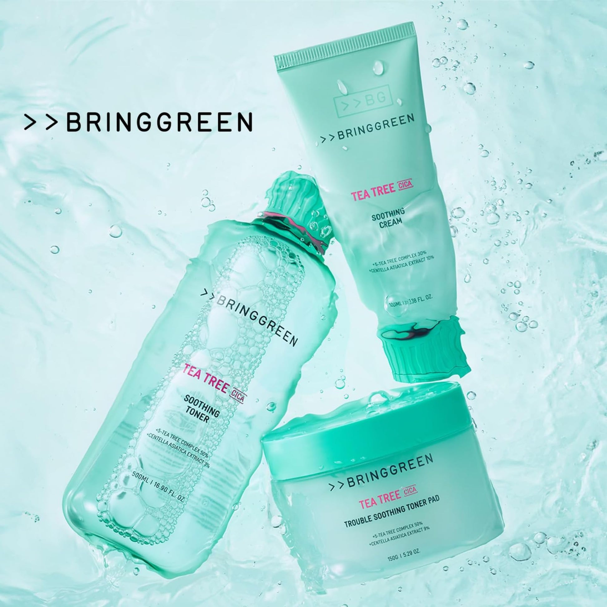 BRING GREEN Tea Tree CICA Soothing Toner PAD | Korean Daily Skincare Routine with Mild Formula, Cooling for Soothing and Hydrationg Effect, Vegan Certified Toner Pads 90 Count, 5.29 Fl. OZ.