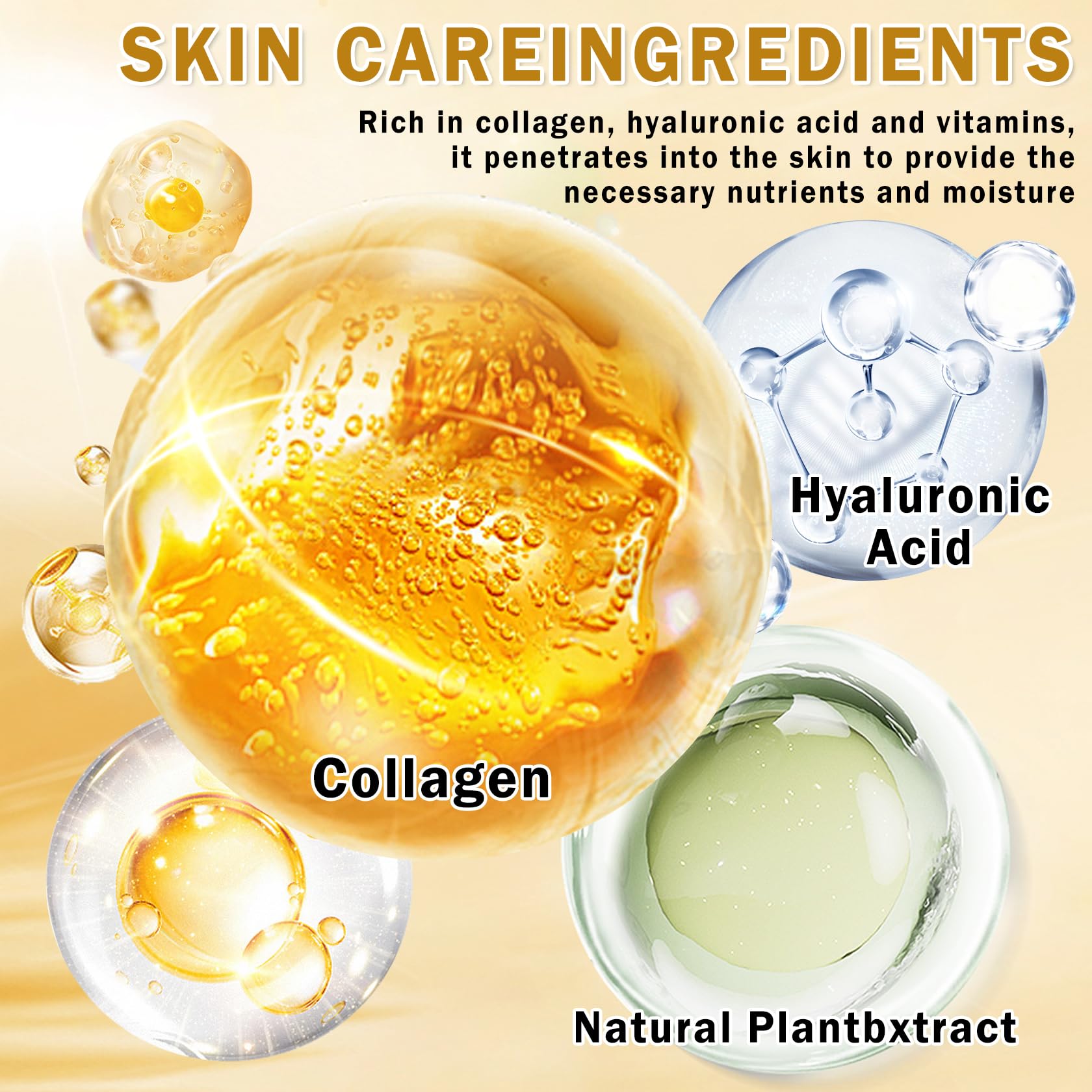 Details: -Under eye patches and lip masks in the set are designed with independent packaging, which is convenient to carry. Whether at home, in the office or traveling, you can easily take out a piece for care. -Gold lip mask can solve the problems of dry lips, dullness and fine lines, and create moist and shiny lips. -24k gold eye mask can reduce eye puffiness and the formation of dark circles, creating delicate and bright eyes.