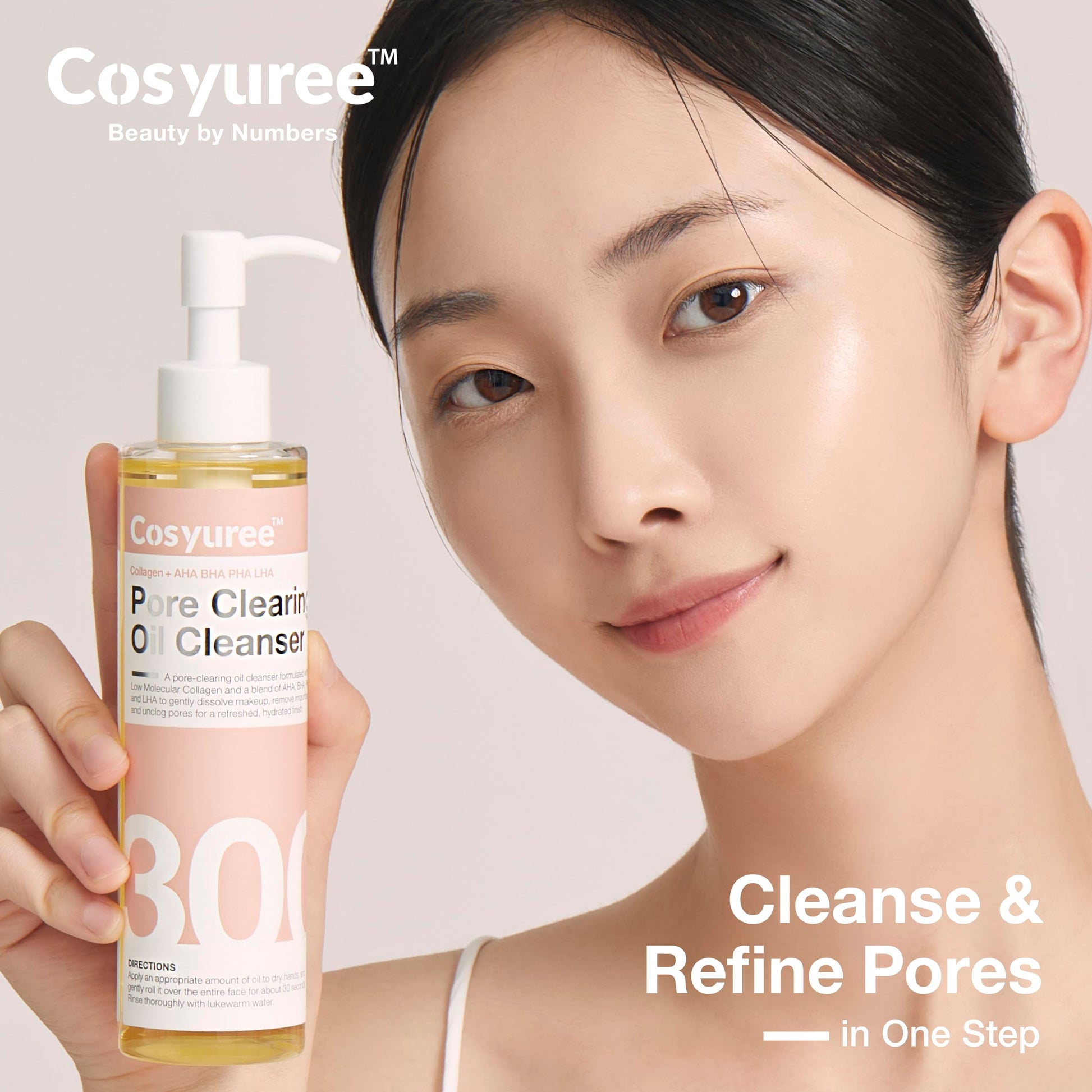 ππππ£ πππππ‘π¦ππ‘π & π£π’π₯π πππ₯π β Cosyuree Collagen Face Oil Cleanser combines AHA, BHA, PHA, and LHA to act as a powerful pore cleanser, removing makeup, unclogging pores, and clearing excess oil, leaving skin refreshed and smooth with every use.