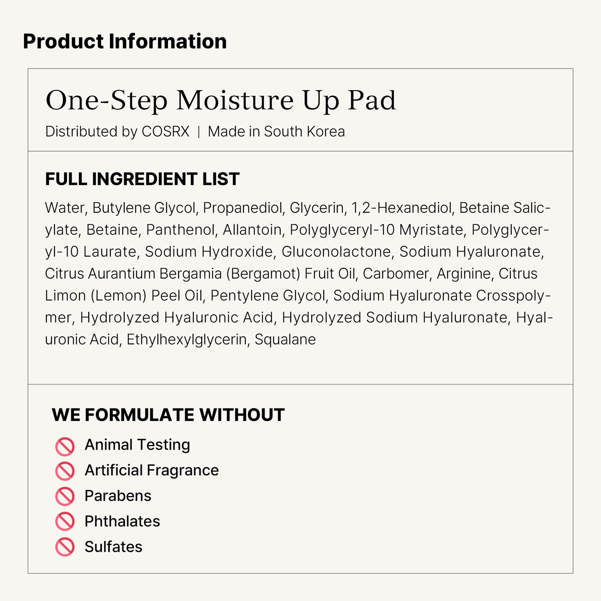 COSRX Standards: COSRX Standards: All COSRX products are formulated with skin-friendly ingredients that alleviate irritated skin. Hypoallergenic, Dermatologist tested, Animal Testing-FREE, Parabens-FREE, Sulfates-FREE, Phthalates-FREE