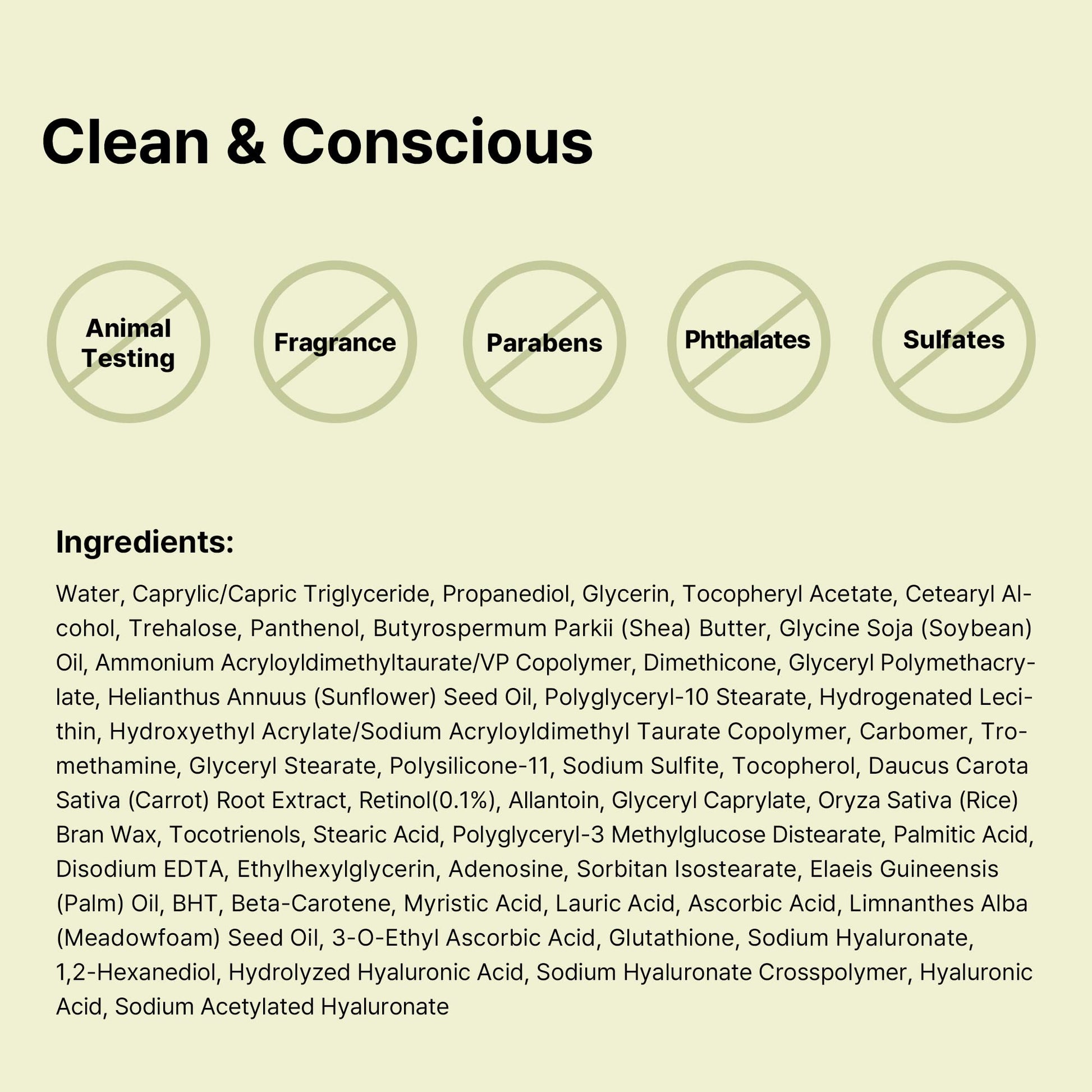 Retinol 0.1% Cream: Retinol helps reduce signs of aging such as fine lines and wrinkles to achieve smoother, firmer, and more youthful-looking skin. It helps renew and resuface the skin and leaves the face glowing with radiance.