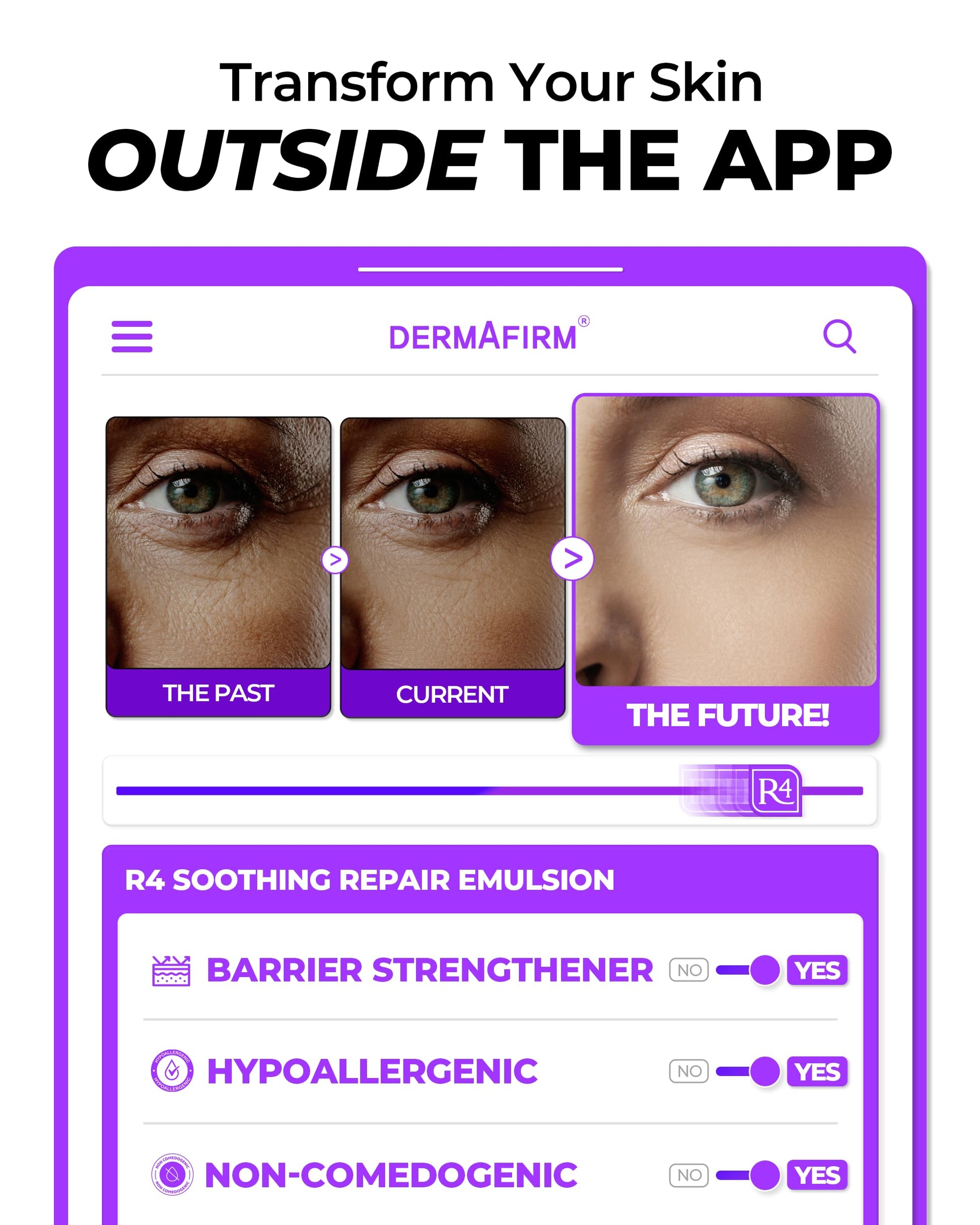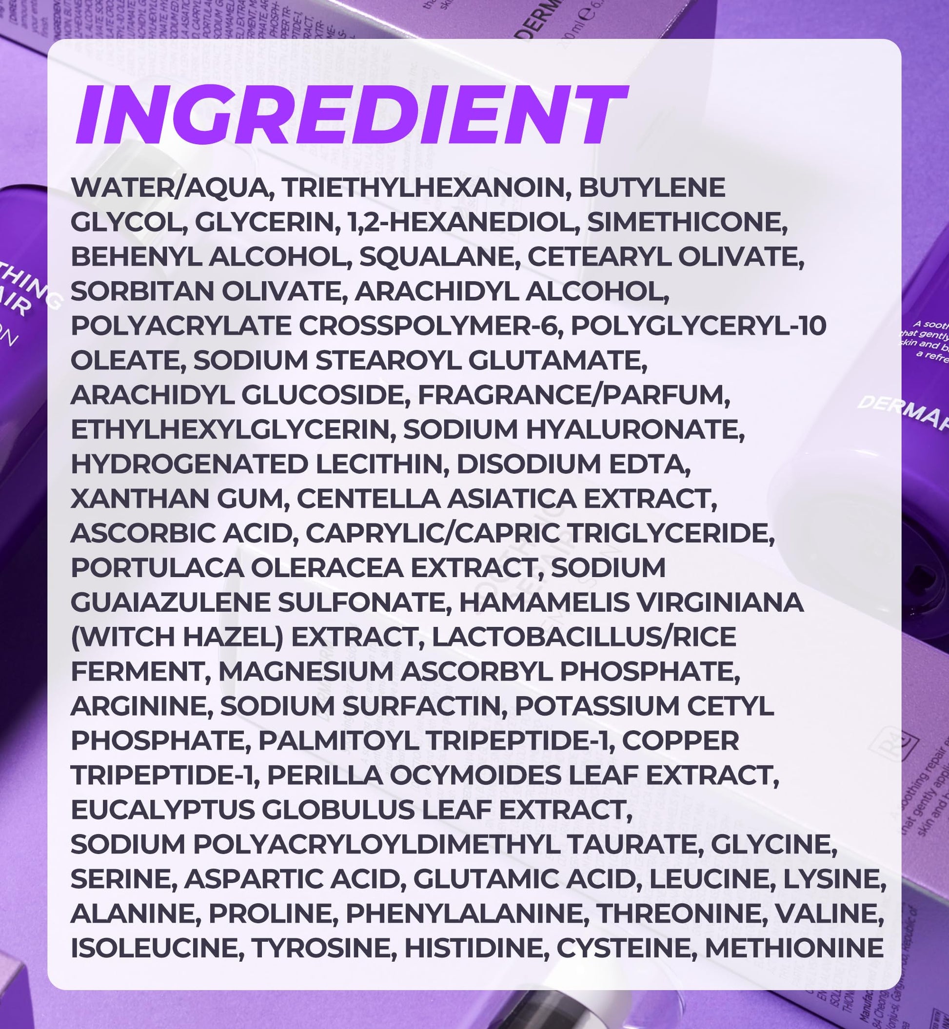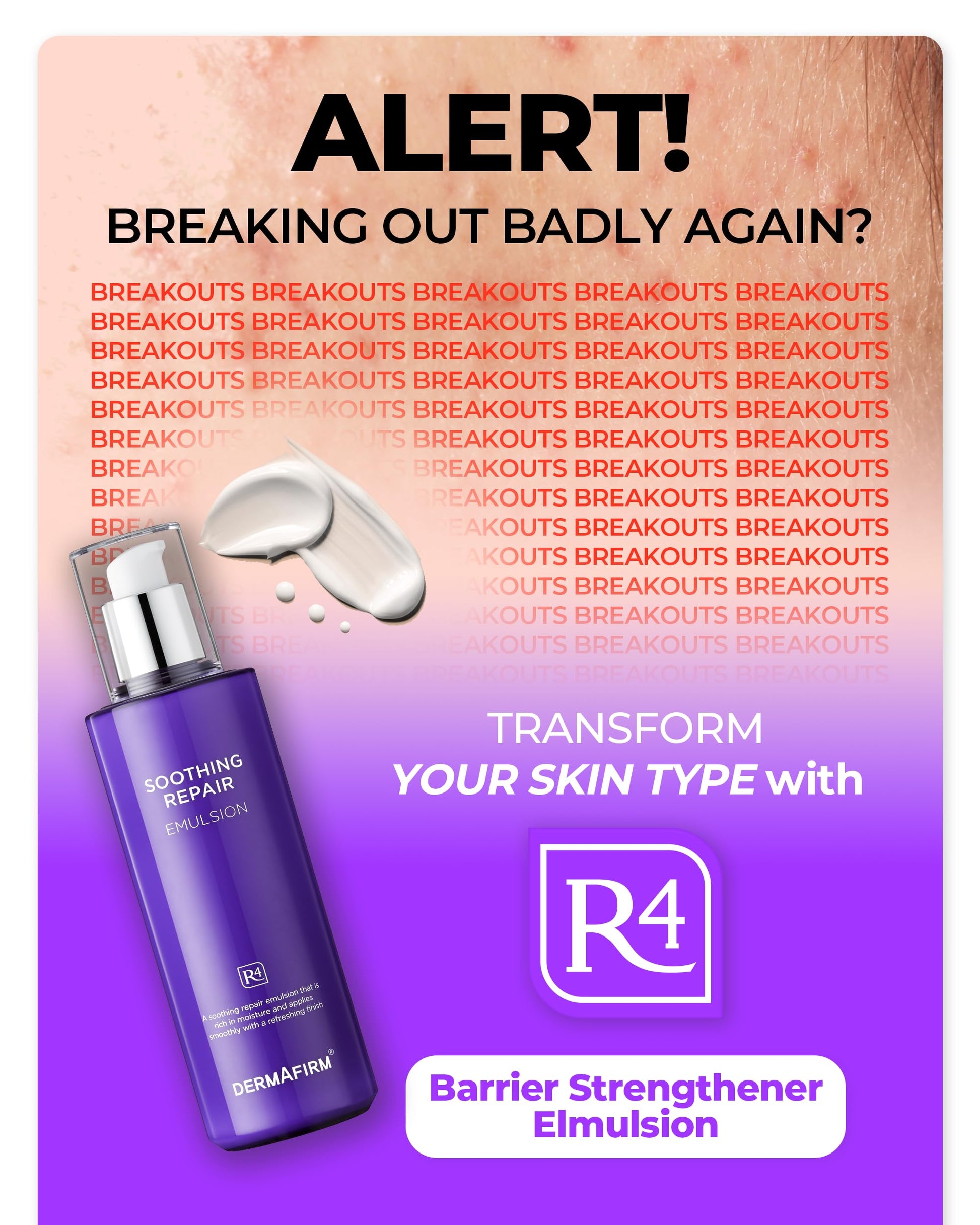 REPLENISH AND NOURISH YOUR SKIN. DERMAFIRM Soothing Repair Emulsion Skincare R4 delivers swift relief to stressed skin. Infused with natural botanicals such as Eucalyptus and Perilla Leaf, it rapidly calms and firms irritated skin, combating the effects of pollution, mask wear, and intense sunlight for a soothing sensation.