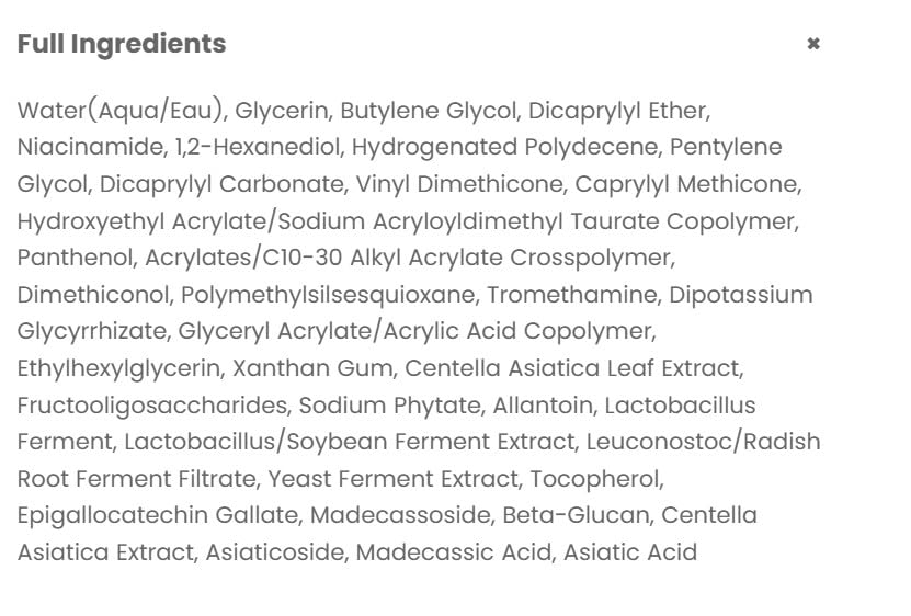 • It contains cica complex, which can effectively calm skin hotness and redness, and replenish water for skin