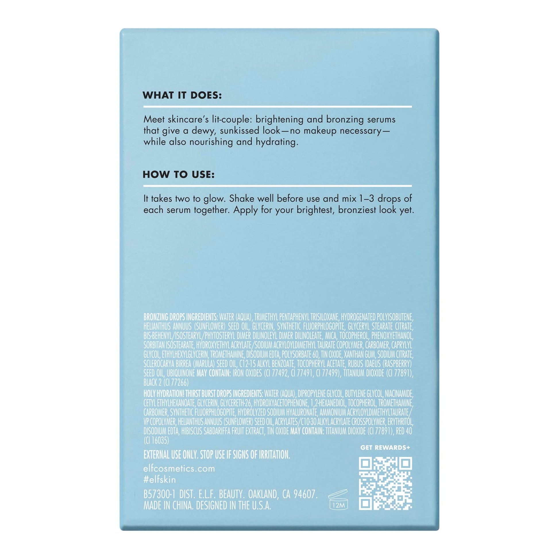 What it is: It takes two to glow! Meet skincare’s most lit couple, available in one kit: e.l.f. SKIN’s Holy Hydration! Thirst Burst Drops and Bronzing Drops.