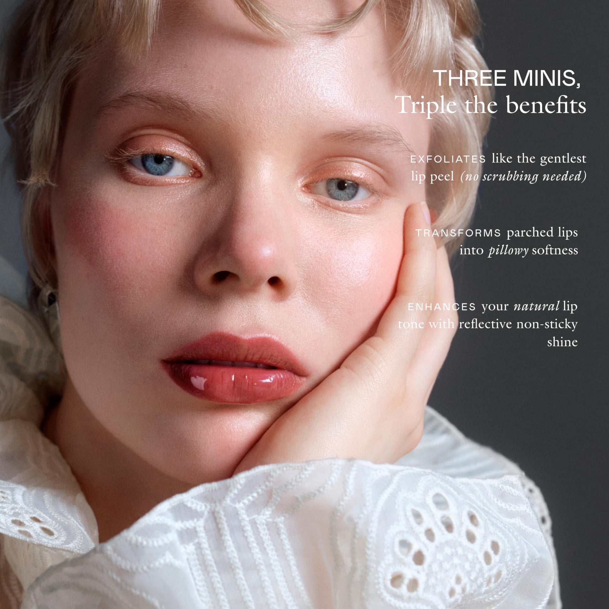 • THREE SHADES, ONE INTENTIONAL ROUTINE: The Threesome features three mini versions of Le Chouchou Lip Balm—Boba Bounce, Burnt Malai, and Bissap Glaze—each with its own soft tint and unique flavor. Whether you're starting your morning, heading out, or winding down, there's a shade for every part of your day.