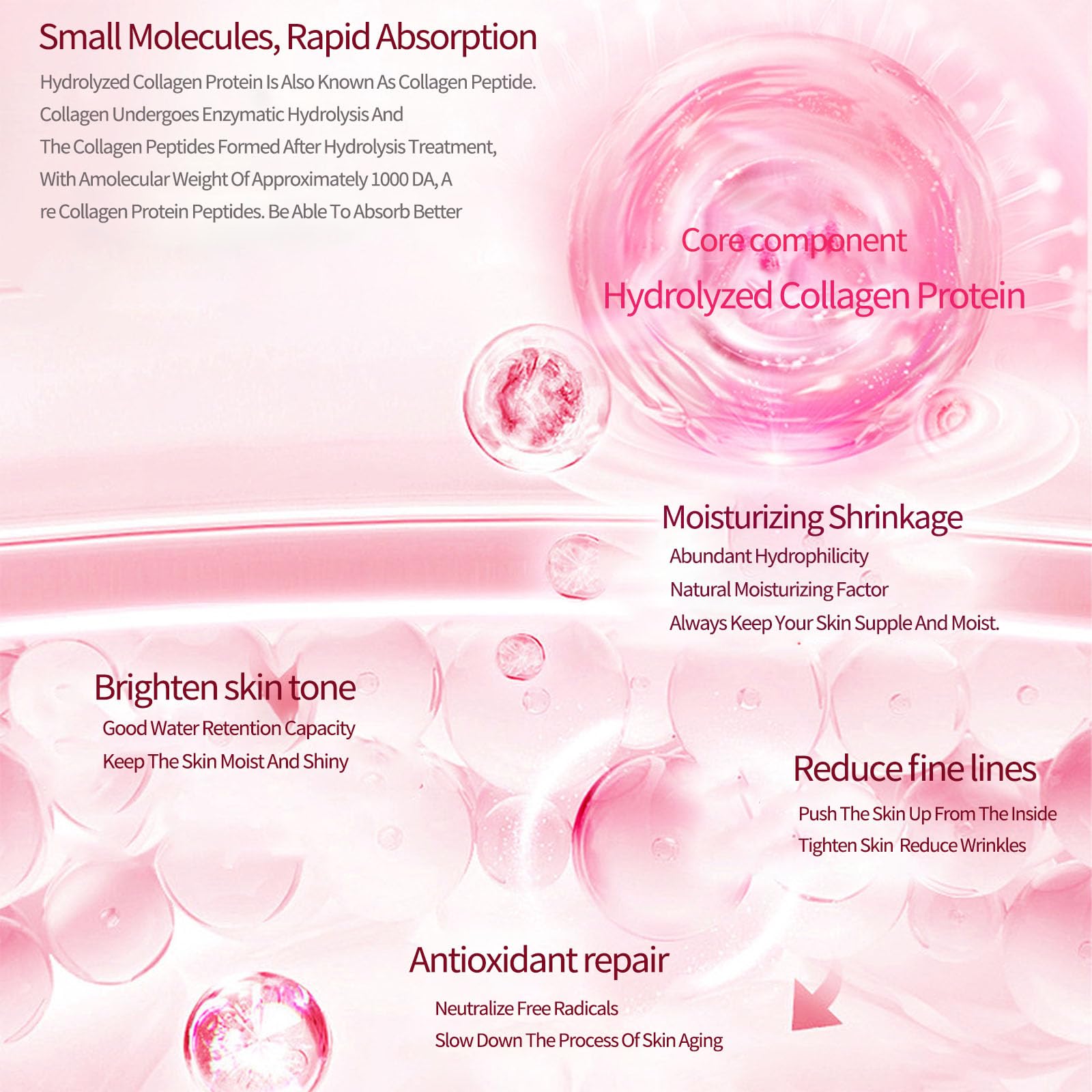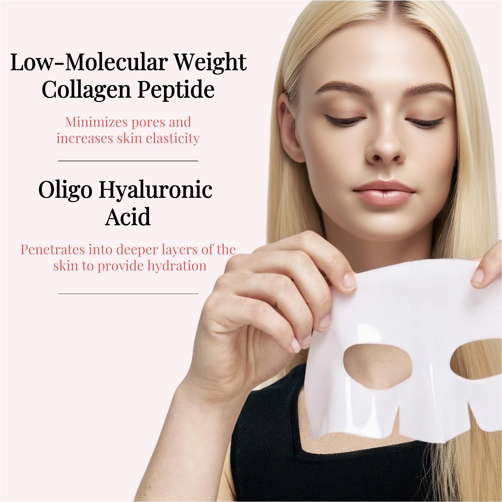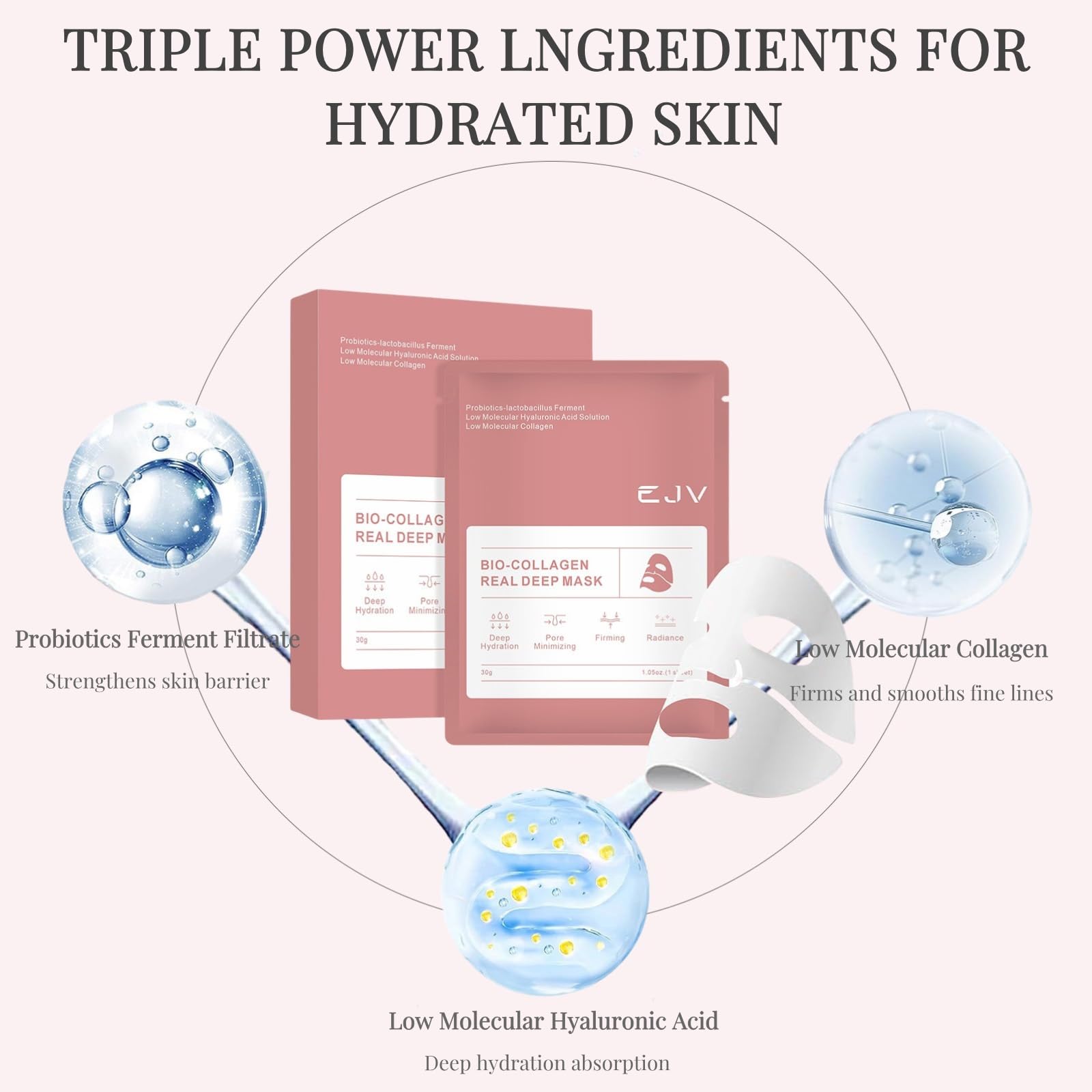 Innovative hydrating technology: After 30 minutes of use, this EJV collagen mask changes from no longer transparent to a transparent film, allowing you to observe the entire absorption process. Contains ultra-low molecular weight collagen and hyaluronic acid to ensure deep hydration; The time it takes for absorption depends on your skin type