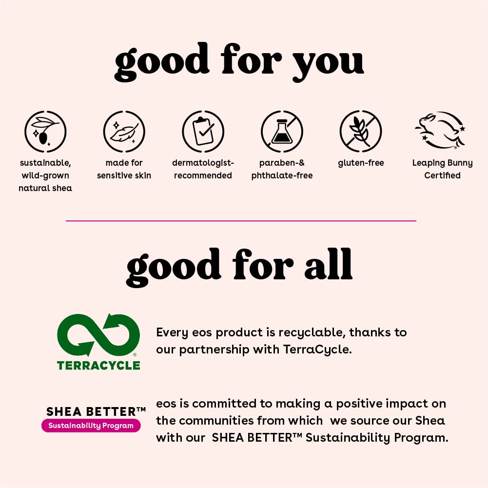 SUSTAINABLY-SOURCED INGREDIENTS: eos lip balms have wild grown, sustainably sourced, natural shea butter and oil to leave your lips smooth and nourished
