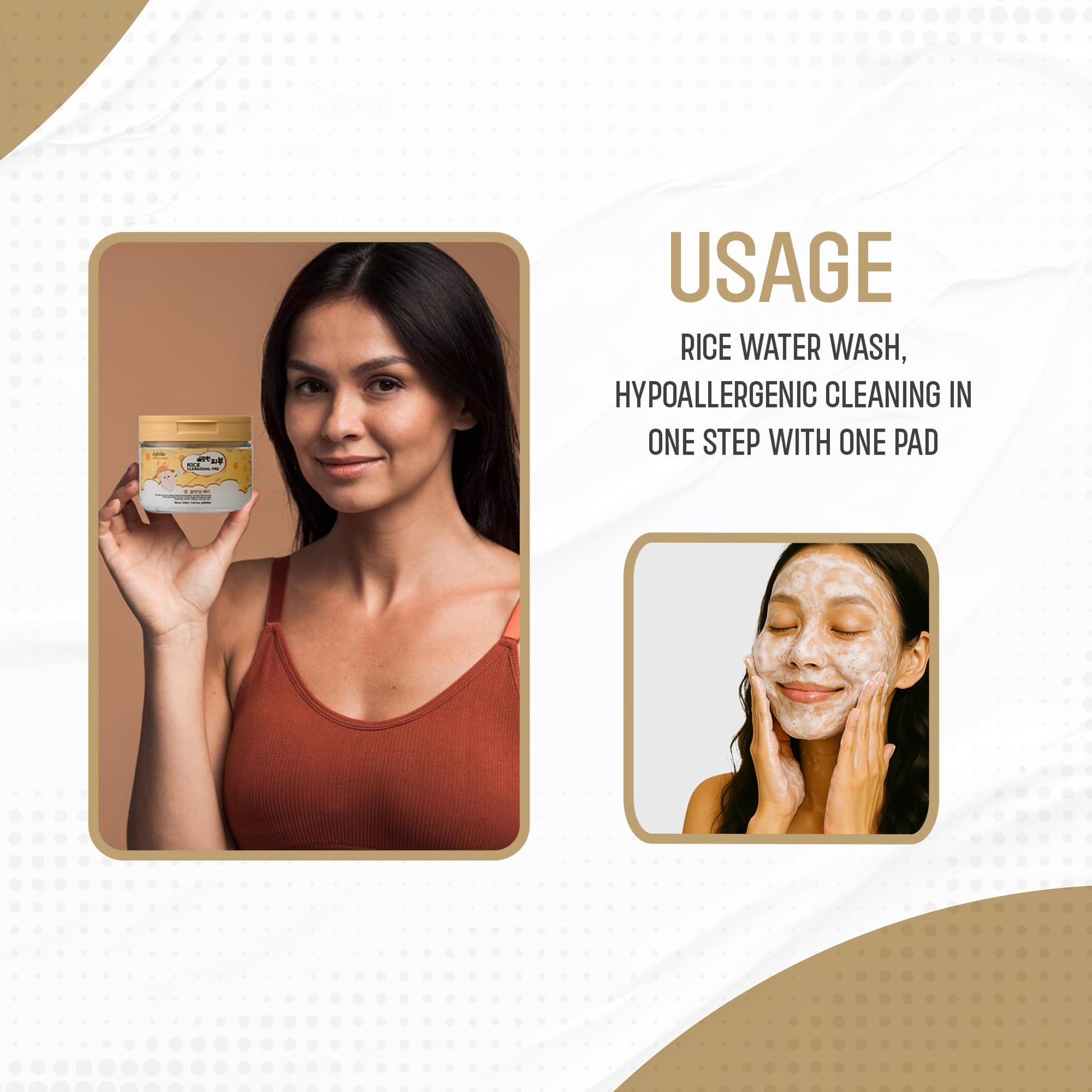 Powered by Fermented Rice Extract – Each pad is infused with rice extract and rice ferment filtrate, ingredients traditionally used in skincare for their ability to support a smooth, refined appearance. These naturally derived components help refresh the skin’s surface and promote a balanced, luminous tone when used consistently.