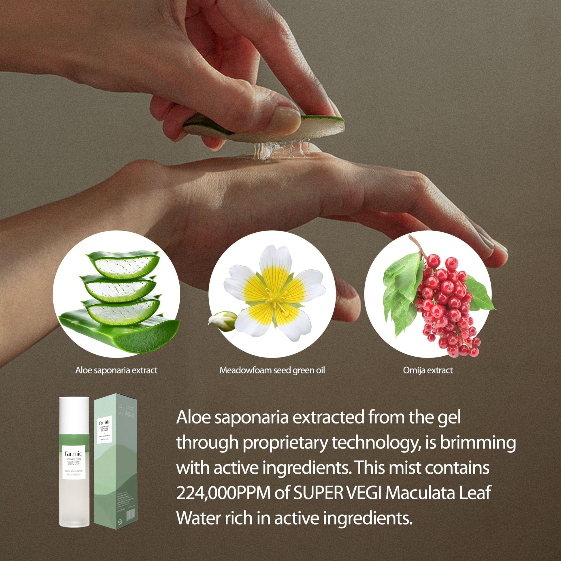 ALOE SAPONARIA EXTRACTED from the gel through proprietary technology, is brimming with active ingredients. This mist contains 224,000PPM of SUPER VEGI Maculata Leaf Water rich in active ingredients.