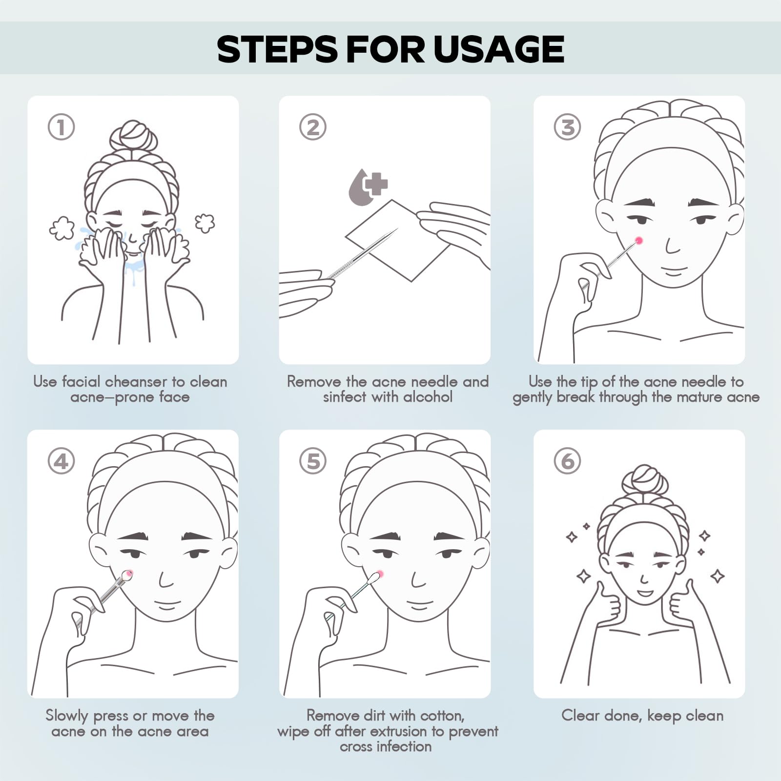 ✔ Kind Tips: Correct usage makes things easy, we don't suggest use any blackhead remover before the acne matured, and please wipe all tools with rubbing alcohol before and after each use. please follow the instructions.