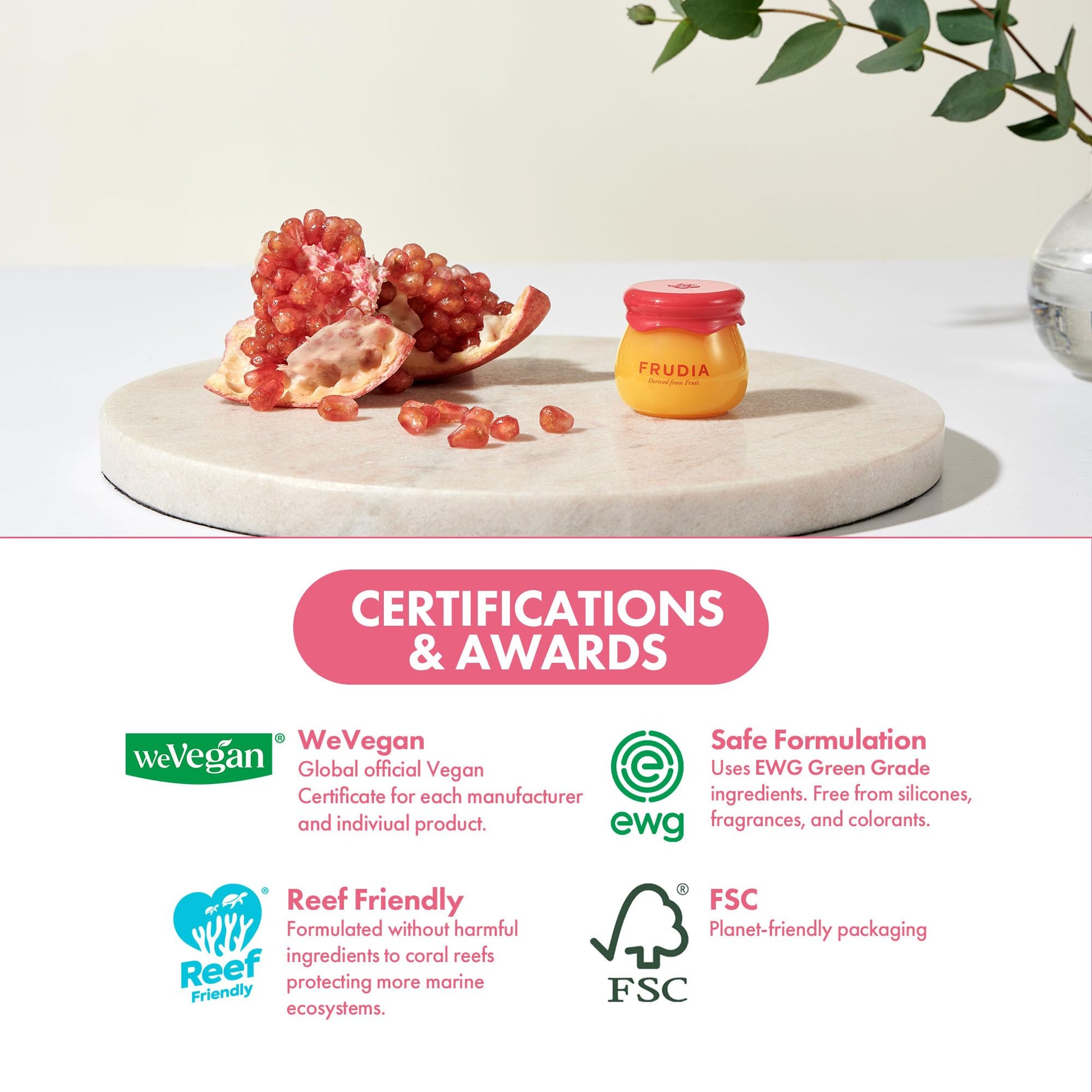 FRUDIA Pomegranate Honey Lip Balm, Lip Plumping, Hydrating, & Translucent Red Tinted 3-in-1 Korean Lip Balm made with Pomegranate Extracts for Dry & Pale Lips