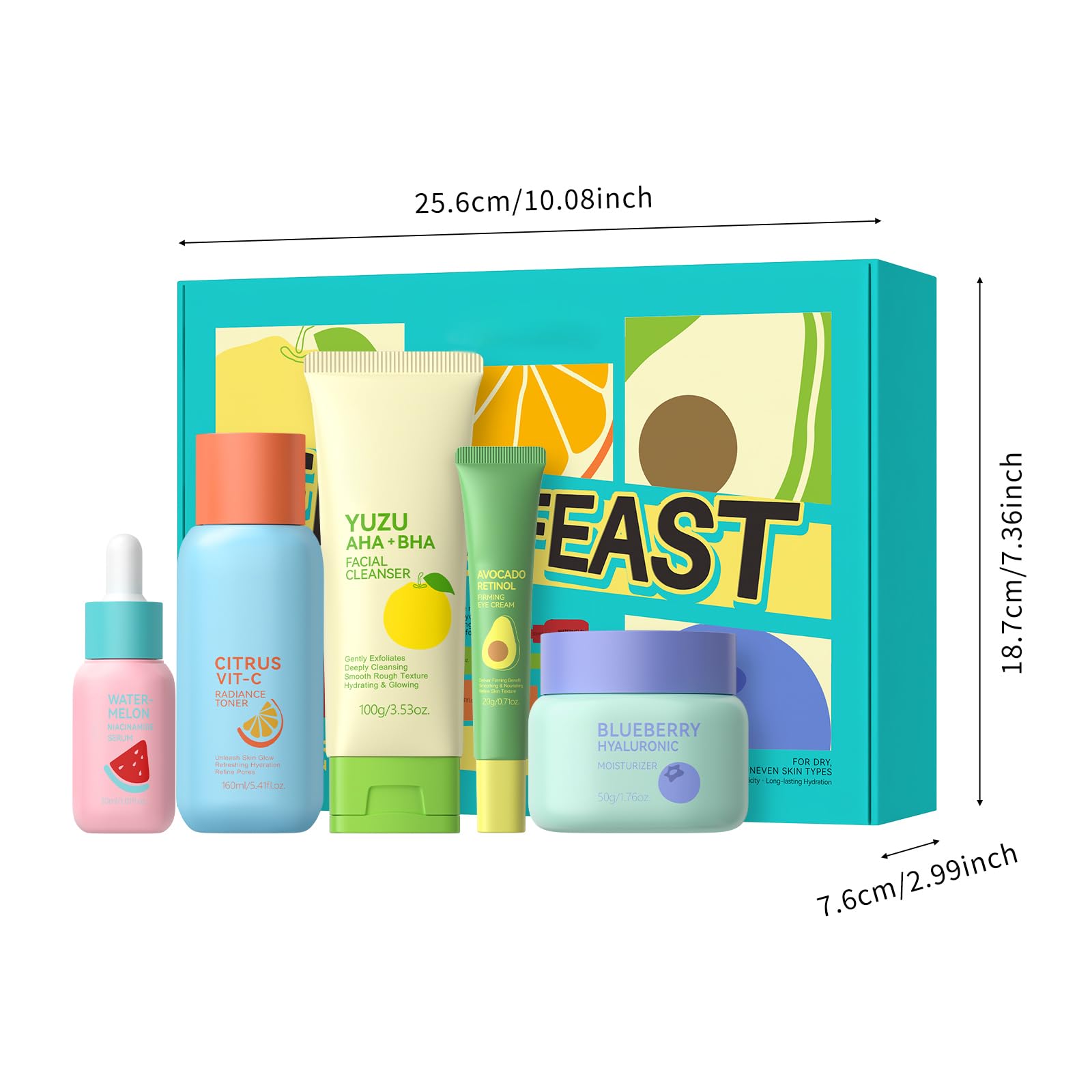 Fruit Korean Style Skin Care Sets, Skin Care for Women Teens Girls, Beauty Skincare Routine Gift Sets, with Facial Cleanser, Toner, Serum, Eye Cream, Moisturizer, Hydrates, Smoothes, Evens Skin tone