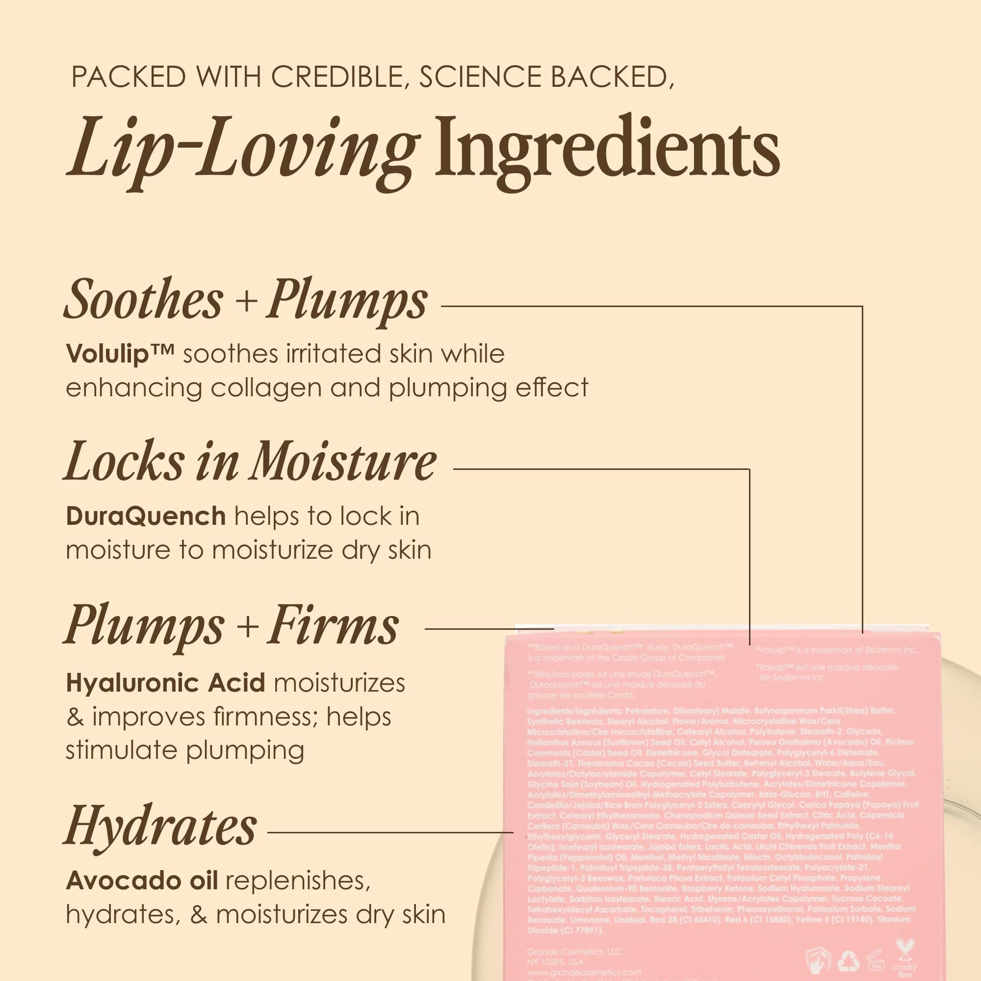 Skip the lip service and get a plump, pillowy pout with GrandePOUT™ Plumping Lip Mask! This 2 in 1 solution is infused with key ingredient complexes Volulip™ & DuraQuench ™. Volulip ™ plumps lips up with moisture to help reduce lip lines and wrinkles while intelligent hydration complex, DuraQuench ™, forms a structural layer on the lips to help reinforce the skin's natural barrier, locking in moisture for up to 72 hours!