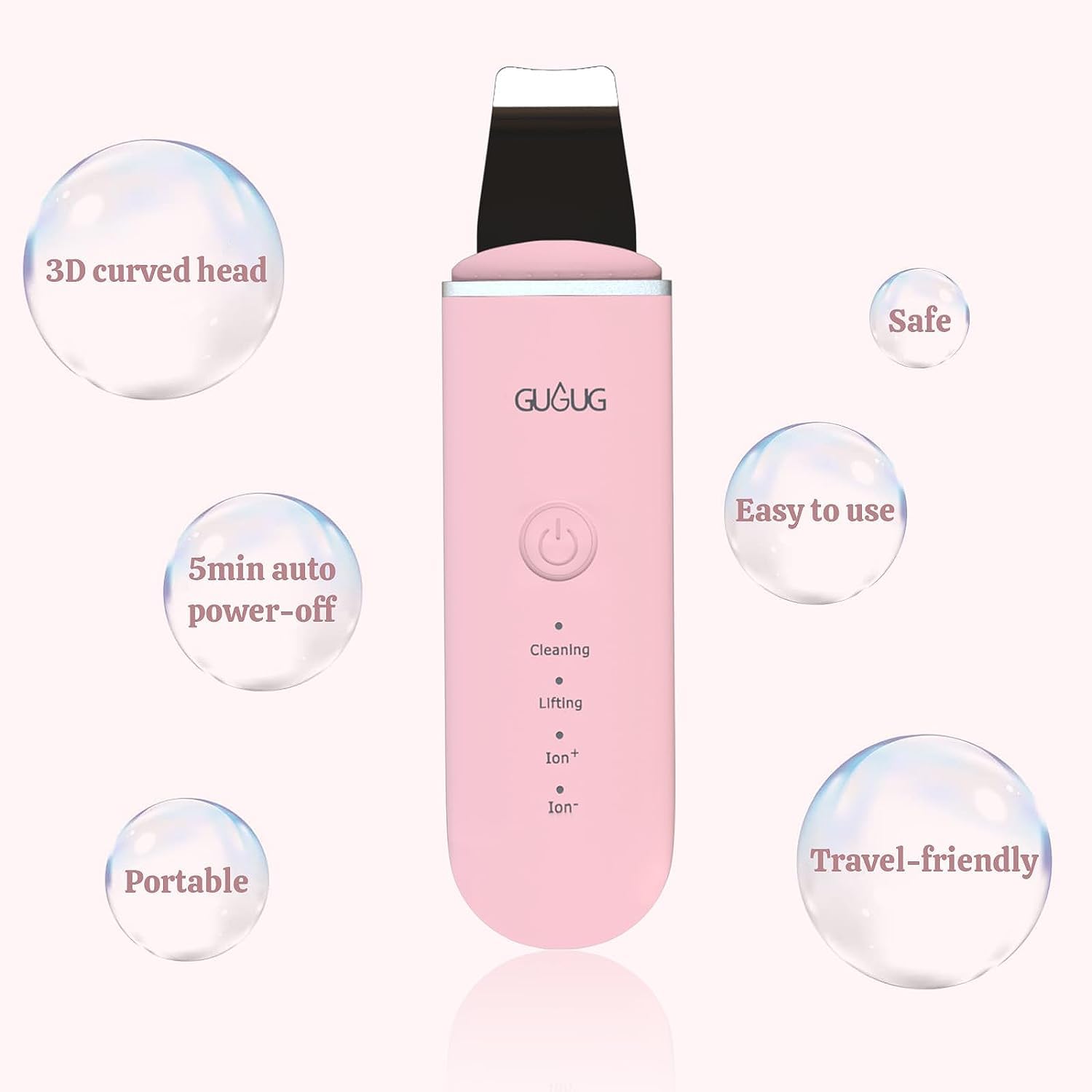 Details: 1.HOW TO USE: Cleaning: Wet face and squeeze facial cleanser on silicon cover, gently make circles around your face with the bristle side to do the basic cleaning. Lon+: Put some toner and hold the metal bar. Place the ""GUGUG"" logo facing inwards at 45° to remove blackheads whiteheads, etc. Lon-: Use pore-shrinking products or facial masks. Place the ""GUGUG"" logo facing outwards at 45°on the face to calm the skin and avoid redness. Lifting: Use face cream or essence. Place the ""GUGUG"" logo facing outwards at 45°on the face to do massage and lifting. 2.You need to use it consistently to see results. Skin care products such as masks, nose strips, and shrinking lotions will increase the effectiveness of removing blackheads. Be careful not to use them too often, just two to three times a week . 3.If you encounter the problem that the product does not turn on, first I kindly ask you to try by long pressing the switch. If that doesn't work, please contact our after-sales team at the first time, and we will provide you with a satisfactory solution! 4. Our products are equipped with a 5-minute shutdown and an anti-touch design. You need to long press to turn it on. Please charge the spatula occasionally when not in use to keep the battery active. 5.esthetician supplies professional face scrubber self care gifts for women tiktok made me buy it tik tok must haves 2024 trending tiktok items anniversary gifts for women self care items retirement gift birthday Halloween Christmas Holidays Vacation unique friend gifts ideas presents for mom mother's day Valentine's Day gifts nose pores removal