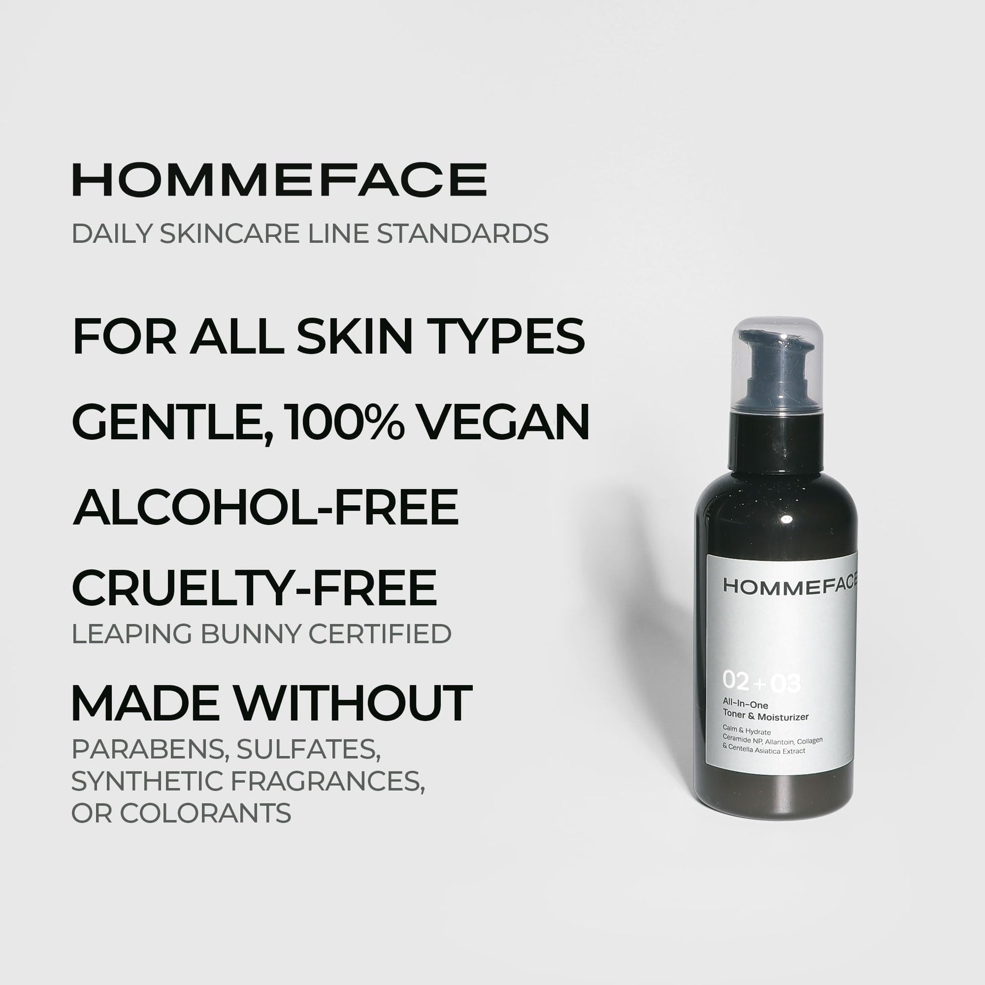 HOMMEFACE Men’s All-in-One Face Toner & Moisturizer, 5.07 fl oz - Lightweight, Alcohol-Free, After Shaving - Korean Skincare Technology with Collagen, Ceramide & Witch Hazel