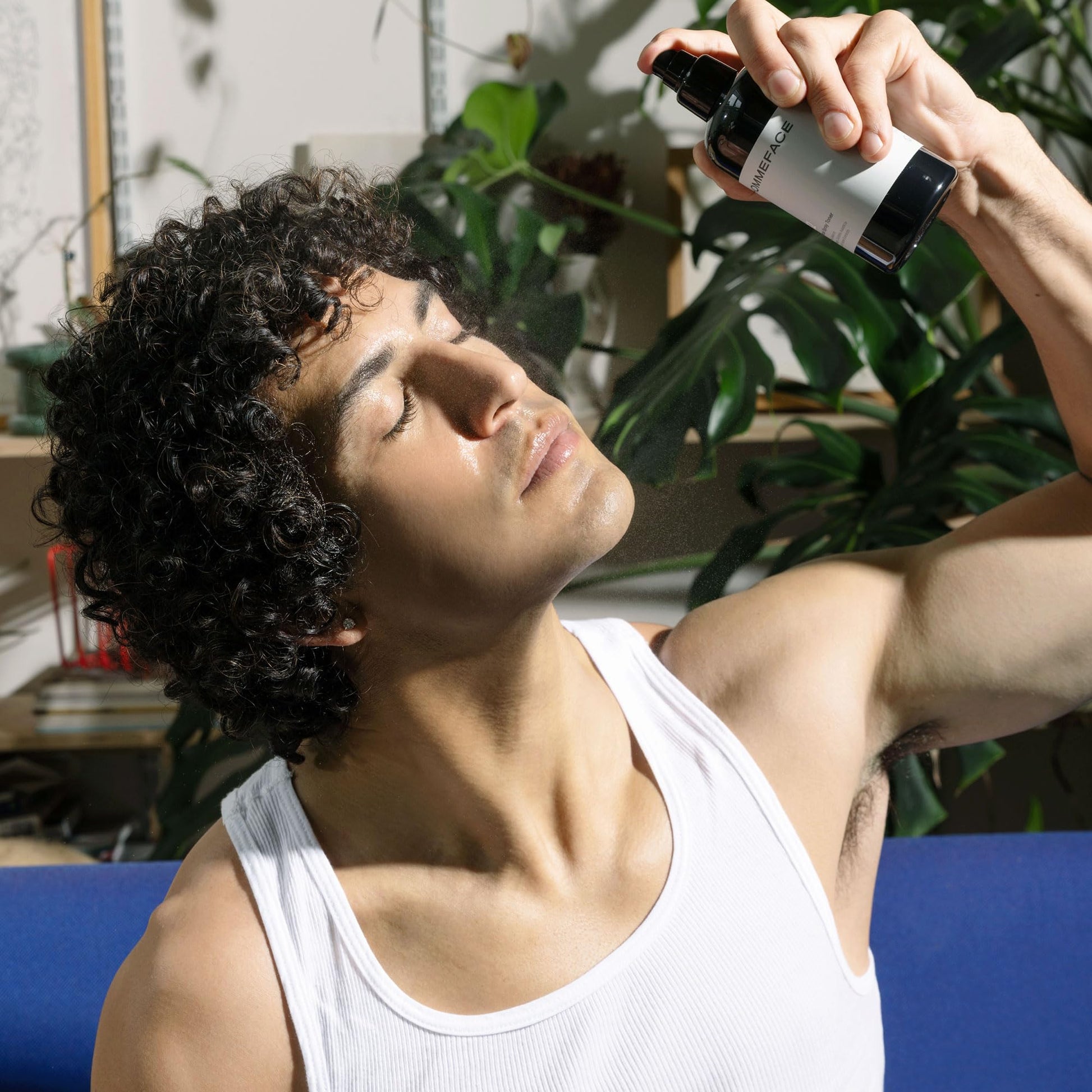 • WHAT IT DOES Rehydrates and restores moisture loss from cleansing and shaving. Removes excess oil and sweat with nourishing plant-based extracts. Repeat use throughout the day as a skin refresher.