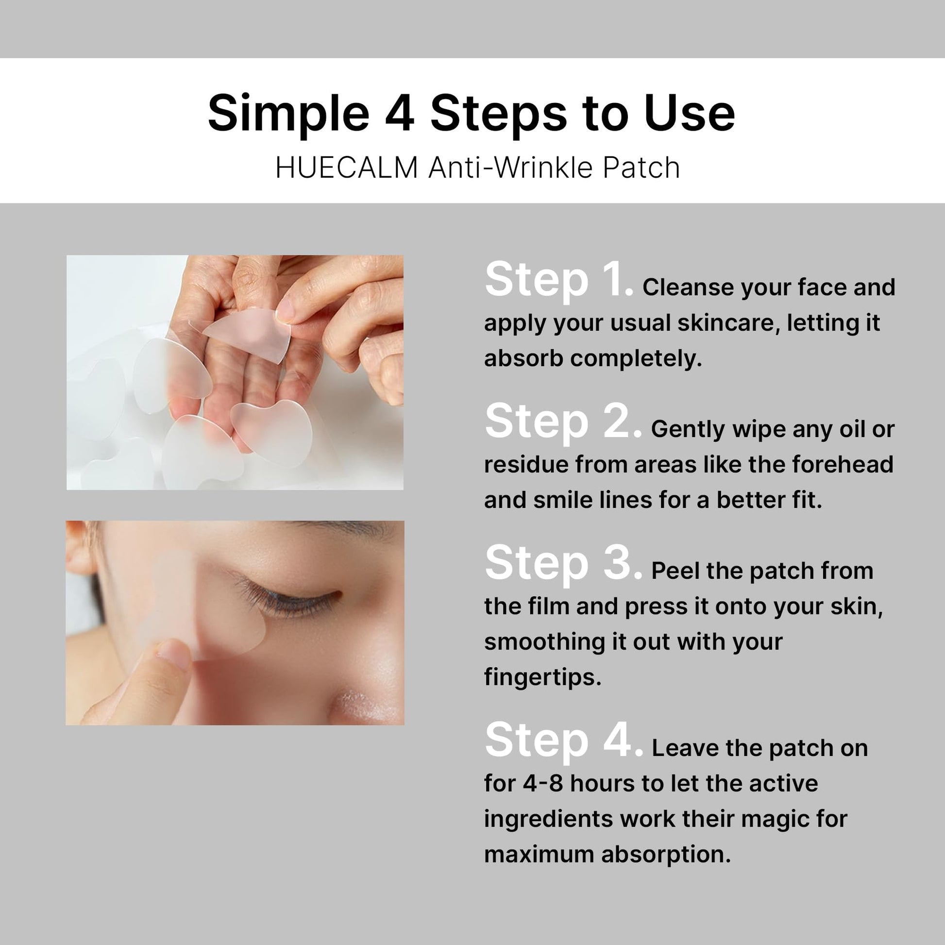 HUECALM Anti-Wrinkle Patches Face Lifting with Hydrolyzed CollagenâInvisible Forehead, Eye, Smile Line Anti-Wrinkle Tape, K-Beauty Overnight Korean Skincare for WomenâFacial Self Care (48 Patches-2PK)
