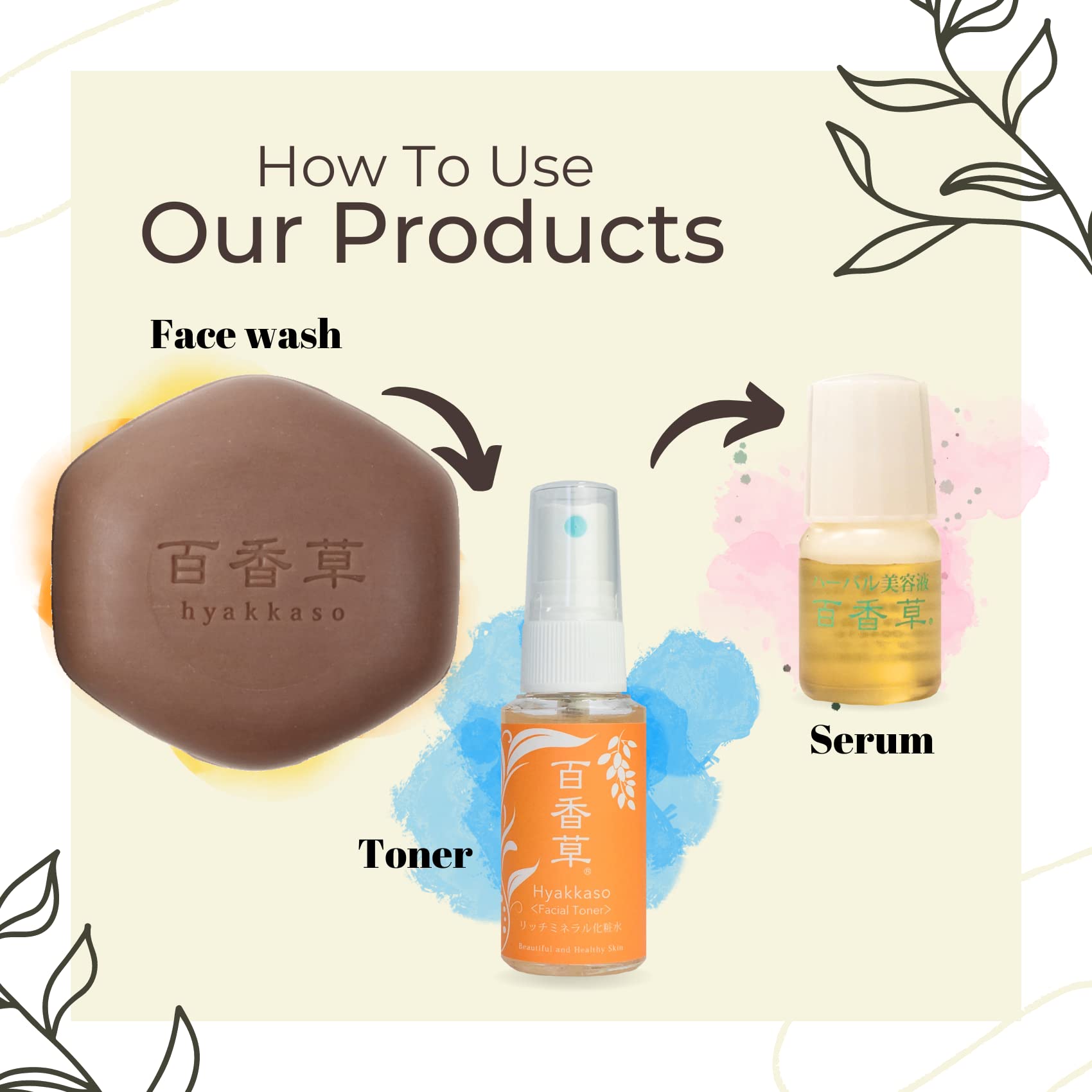 【SOAP】is made out of 22 traditional Japanese herbs. Hyakkaso facial soap cleans skin from dirt, removes non-waterproof make-up, gently cleansing each pore. Whip the soapy liquid into foam and gently massage your face for about 10 second. Soap relaxes and refreshes the skin without leaving it dry. [Acne treatment effect]. Hyakkaso facial soap has proved to show acne treatment results within 1 year of usage. Perfect solution for everyone. Suits for all skin types and all ages.