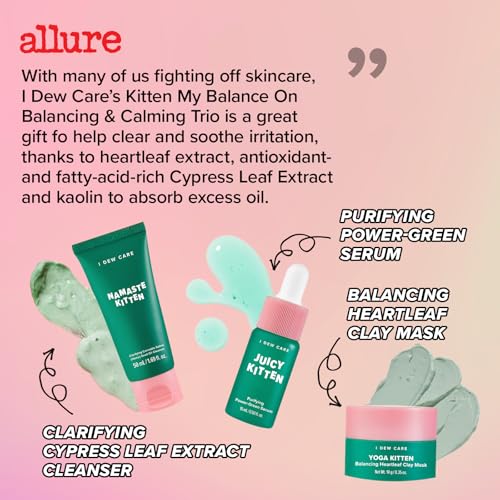 I DEW CARE Blemish Heartleaf Skincare Set - Kitten My Balance On | Foam Cleanser & Wash-off Mask & Serum, Clear and Soothe Irritation, Abosorb Excess Oil, Gentle Face Wash, Travel Size