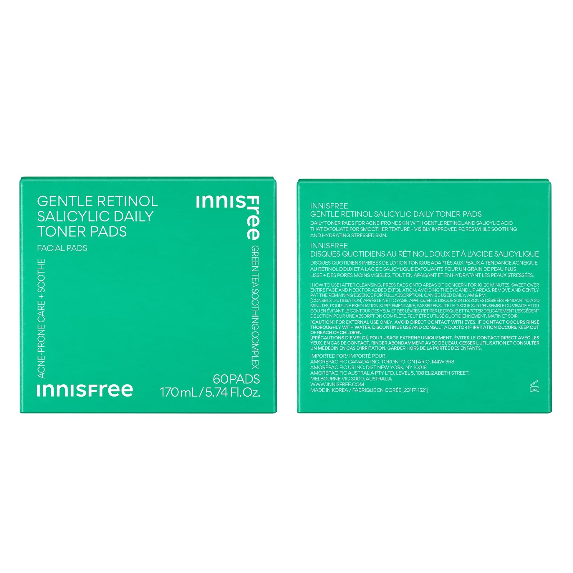 Details: Formulated for sensitive and acne-prone skin, these gentle toner pads calm redness, hydrate, and gently exfoliate without stripping, drying, or irritating your skin. They're packed with Gentle Retinol technology & salicylic acid to improve skin texture while minimizing irritation. A blend of Green Tea Ceramide + Biome & cica add a layer of soothing benefits to maintain a healthy skin barrier. Clinical Results: After Leaving On 10 Minutes: - 96% felt their skin's redness was soothed1 - 90% felt the cooling sensation made their skin less puffy1 - 69% reduction in dead skin cells2 - 49% reduction in excess sebum2 - 31% visible reduction of pores2 After 1 Week of Use: - 100% saw smoother skin1 - 100% felt it hydrated without clogging pores1 - 96% felt it was gentle yet effective1 - 90% saw less oily skin1 After 6 Weeks of Use: - 93% saw less oiliness throughout the day1 Dermatologically tested. Noncomedogenic. Tested and safe for sensititve skin. 1Self-assessment from clinical, 33 women, after 6 weeks of daily use. Left on skin for ten minutes. 2Instrumental results, 33 women, after 1 use. Left on skin for ten minutes.