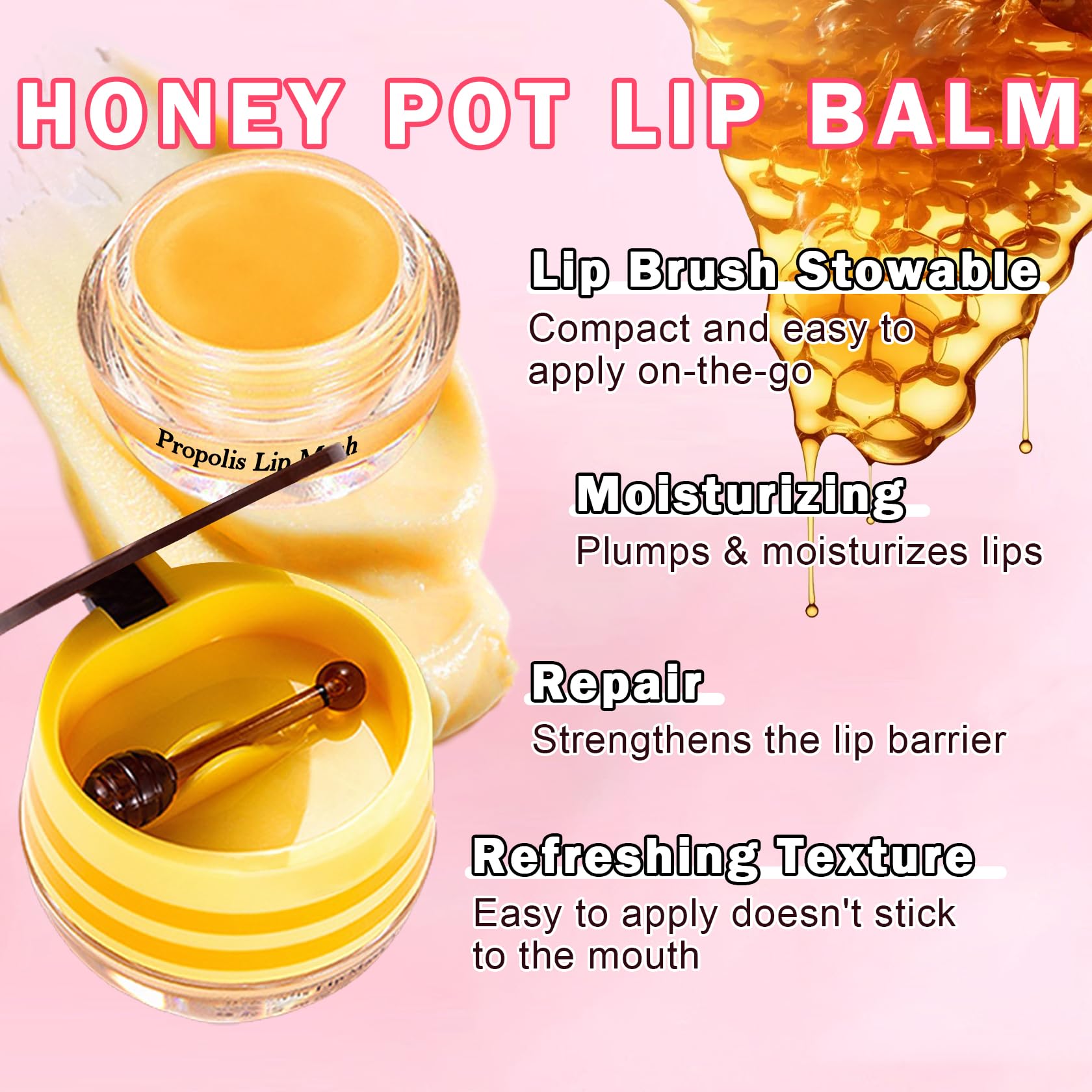 EASY TO CARRY: Honey lip mask has a cute and exquisite small honey pot design with a small stick. After use, put it back into the lip mask box for easy use next time. It can replenish moisture and moisturize the lips anytime and anywhere to keep the lips healthy