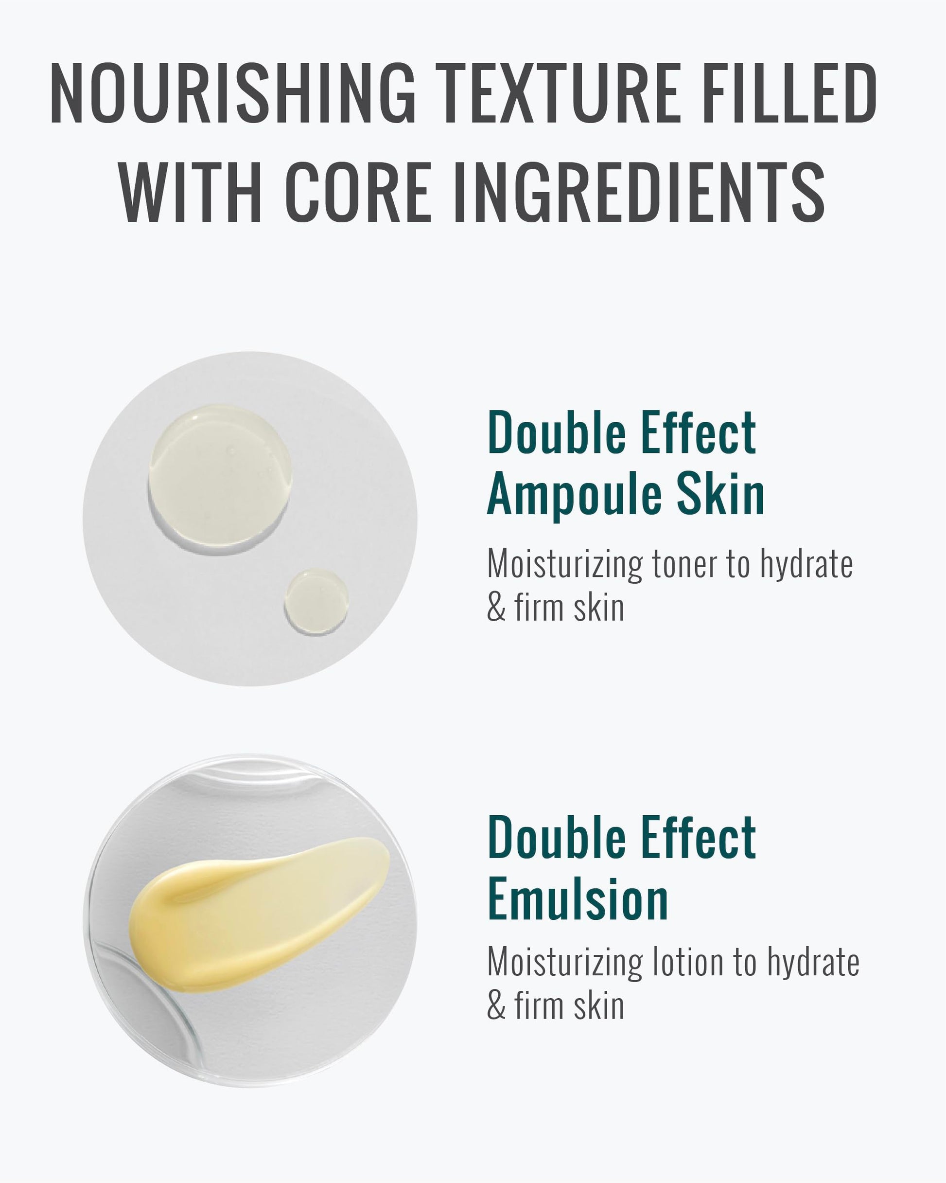 ISA KNOX AGE FOCUS PRIME DOUBLE EFFECT SKINCARE SET – Age Focus Prime Double Effect Ampoule Skin (100ml/3.3 fl oz + 20ml/0.67 fl oz) & Age Focus Prime Double Effect Ampoule Emulsion (100ml/3.3 fl oz + 20ml/0.67 fl oz) & Age Focus Prime Double Effect Wrinkle For All Serum (7ml/0.23 fl oz) & Age Focus Prime Double Effect Eye For All Cream (10ml/0.33 fl oz). This comprehensive anti-aging skincare set strengthens the skin’s core, delivering deep moisture, nourishment, and elasticity.