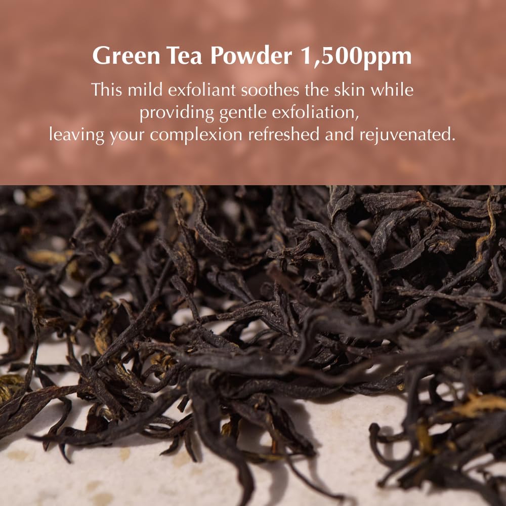 • Moisture Balance: 1,500 ppm of green tea to provide fresh moisture and soothing dehydrated skin, maintaining a healthy moisture balance.