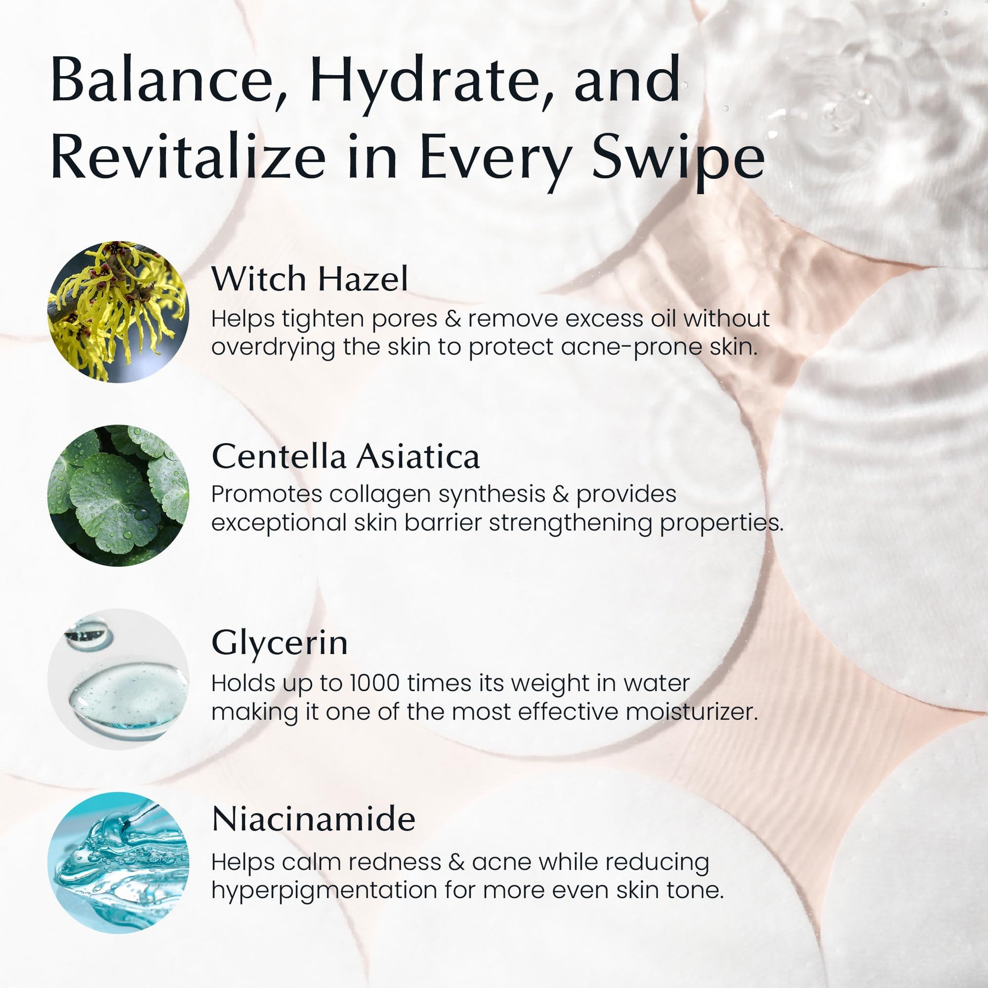 La Pure Korean Toner Pads With Witch Hazel - 100 Ct | Hydrating, Exfoliating Pads & Pore Care Korean Skincare - Gentle, Alcohol-Free, with Glycerin and Centella for Sensitive Skin by La Pure Cosmetics