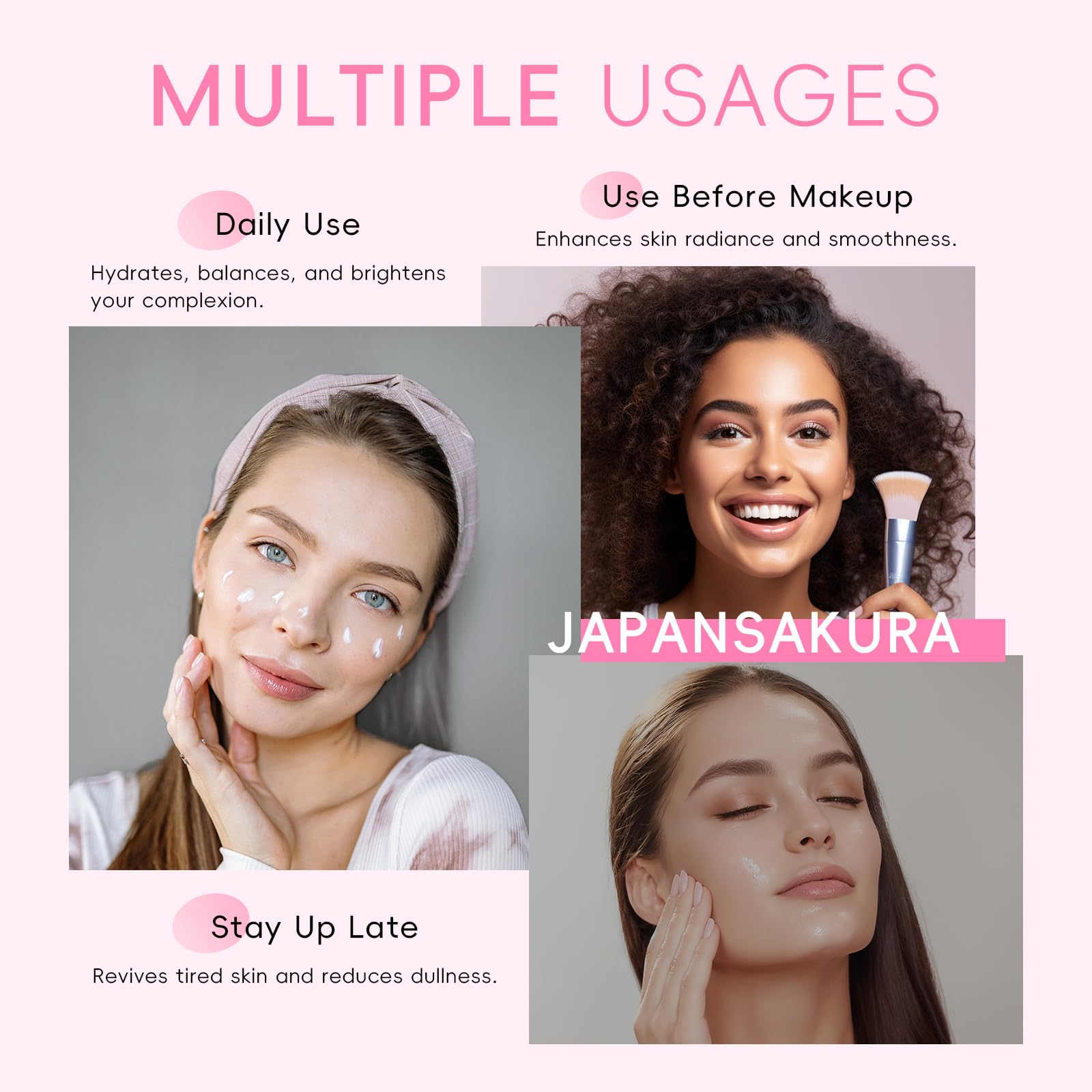 【Natural Sakura Essence】Containing natural sakura extract and sodium hyaluronate, this facial care set deeply moisturizes the skin, improves skin elasticity, and reduces fine lines. With regular use, skin will be refreshed, smooth, and radiant